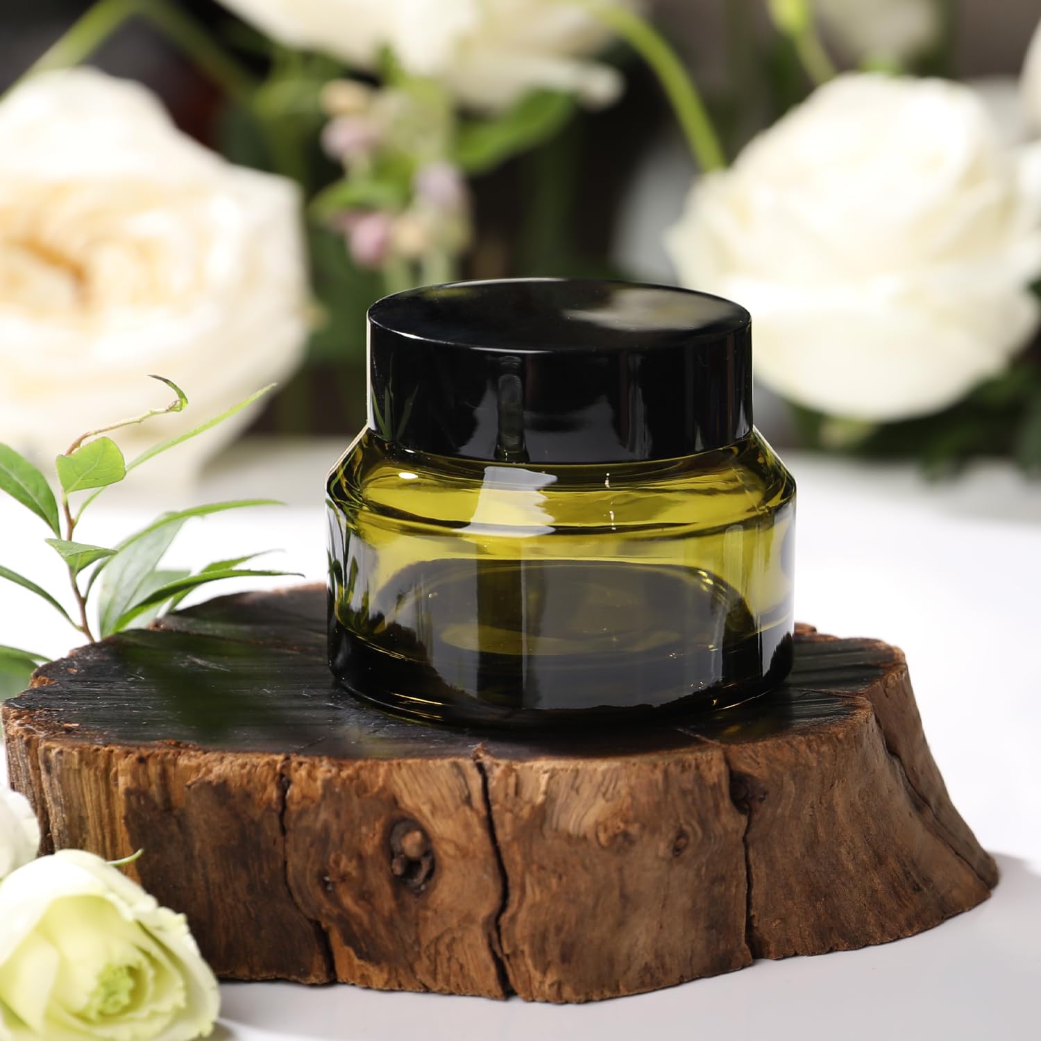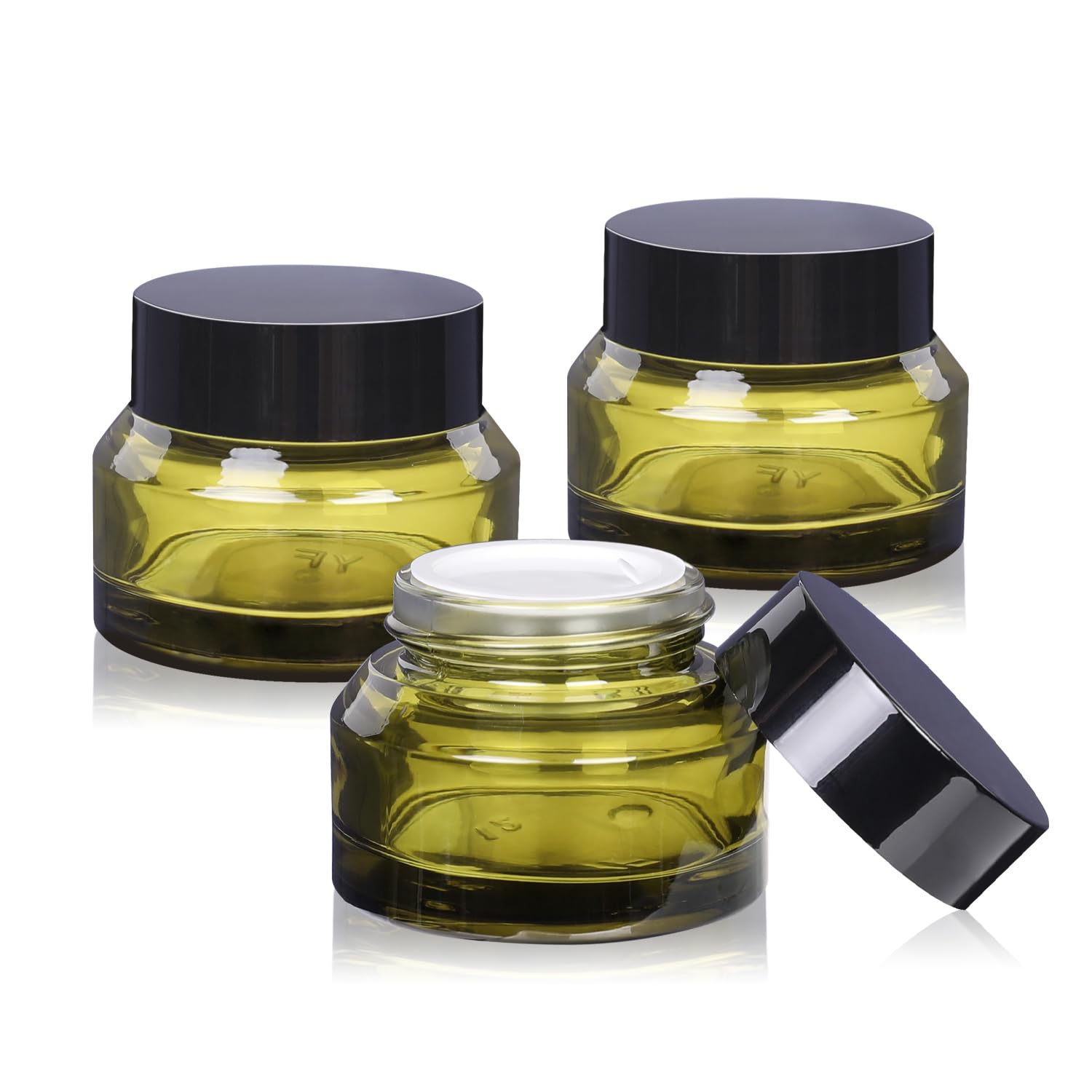 1.7 oz Glass Cosmetic Jars With Lids, 3 Pack Small Containers, 50 ml Green Empty Makeup Jars for Sample, Cream, Lotion