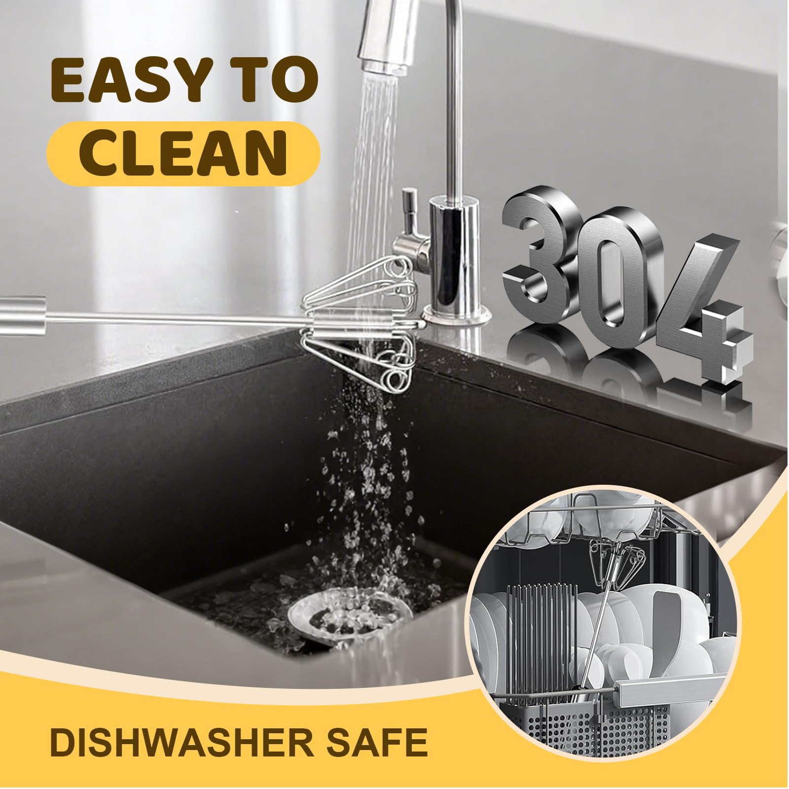 - 【Easy to Clean】Our push whisk can be cleaned in the dishwasher or directly in soapy water, easy to clean every time. The additional hook function makes storage and access easier, making your kitchen more tidy and organized.