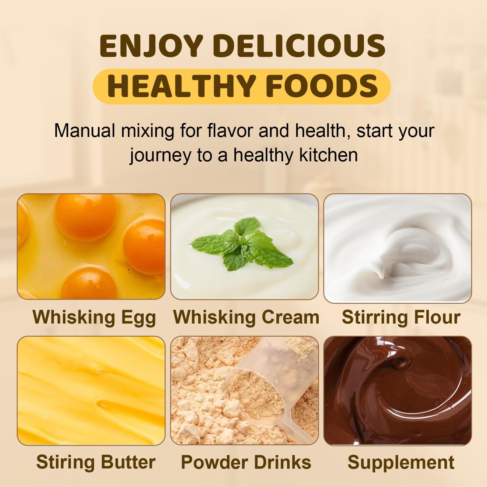 - 【2025 New Design】Newly upgraded double bearing transmission structure, smoother mixing, with durable steel wire spring and golden angle design, the handle is sturdy and not easy to collapse, continuous use will not feel fatigue!