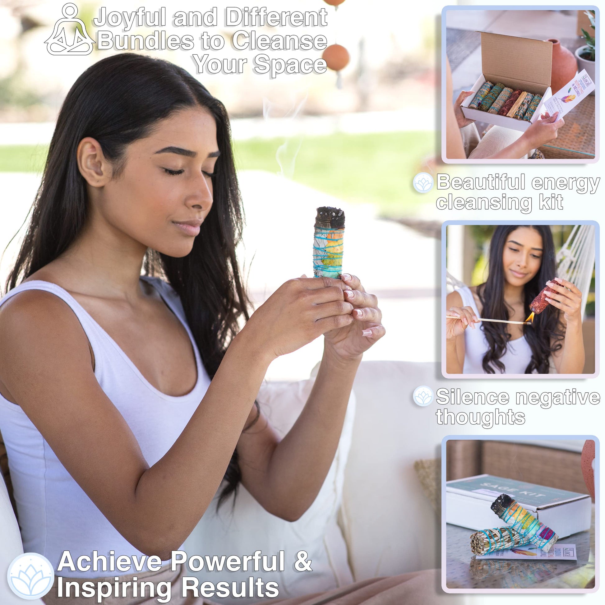 7 Sage Smudge Kit with Blue Sage, 7 Chakra White Sage, Cedar, Dragon's Blood, Rosemary, Yerba Santa, Palo Santo | Salvia Blanca para Limpiar Sustainably Sourced