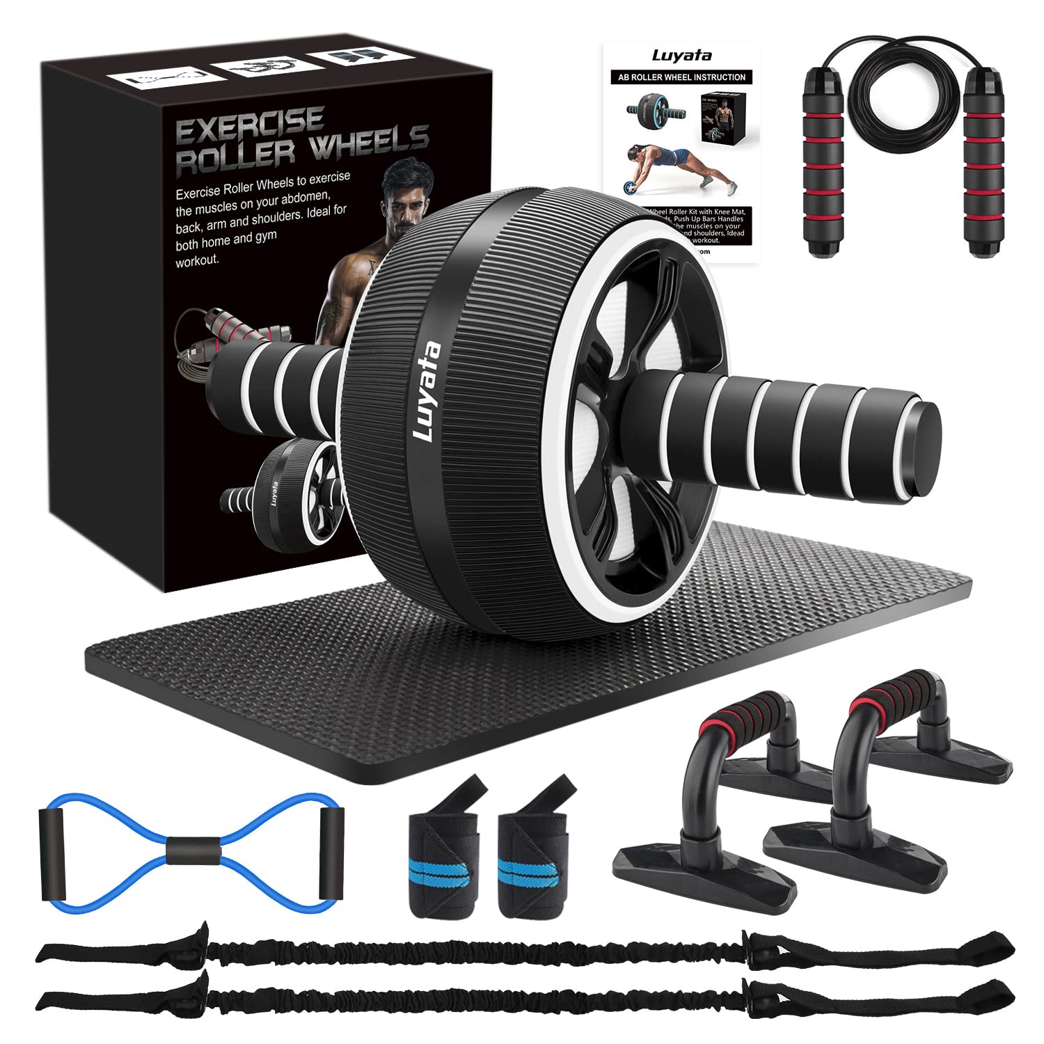 - Comprehensive Exercise Set- 10 Pcs Ab Wheel Roller Kit : 1 AB Roller Wheel, 1 Thick Foam Knee Mat , 2 Push Up Bars Handles Grips, 2 Wrist Wraps, 1×8-shaped Stretched Band, 1 Jump Rope, 1 Guide Book, 1 Gift Box Package. 10-IN-1 ultra-wide ab roller wheel is designed to help you build stronger, bigger abdominal muscles.