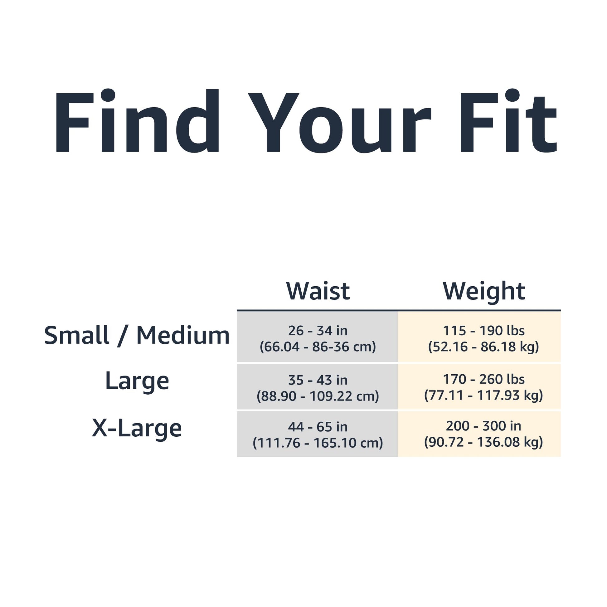 - To find your best fit please use our Amazon Basics sizing chart image, measure both the waist and hips and use the largest measurement to determine your recommended size