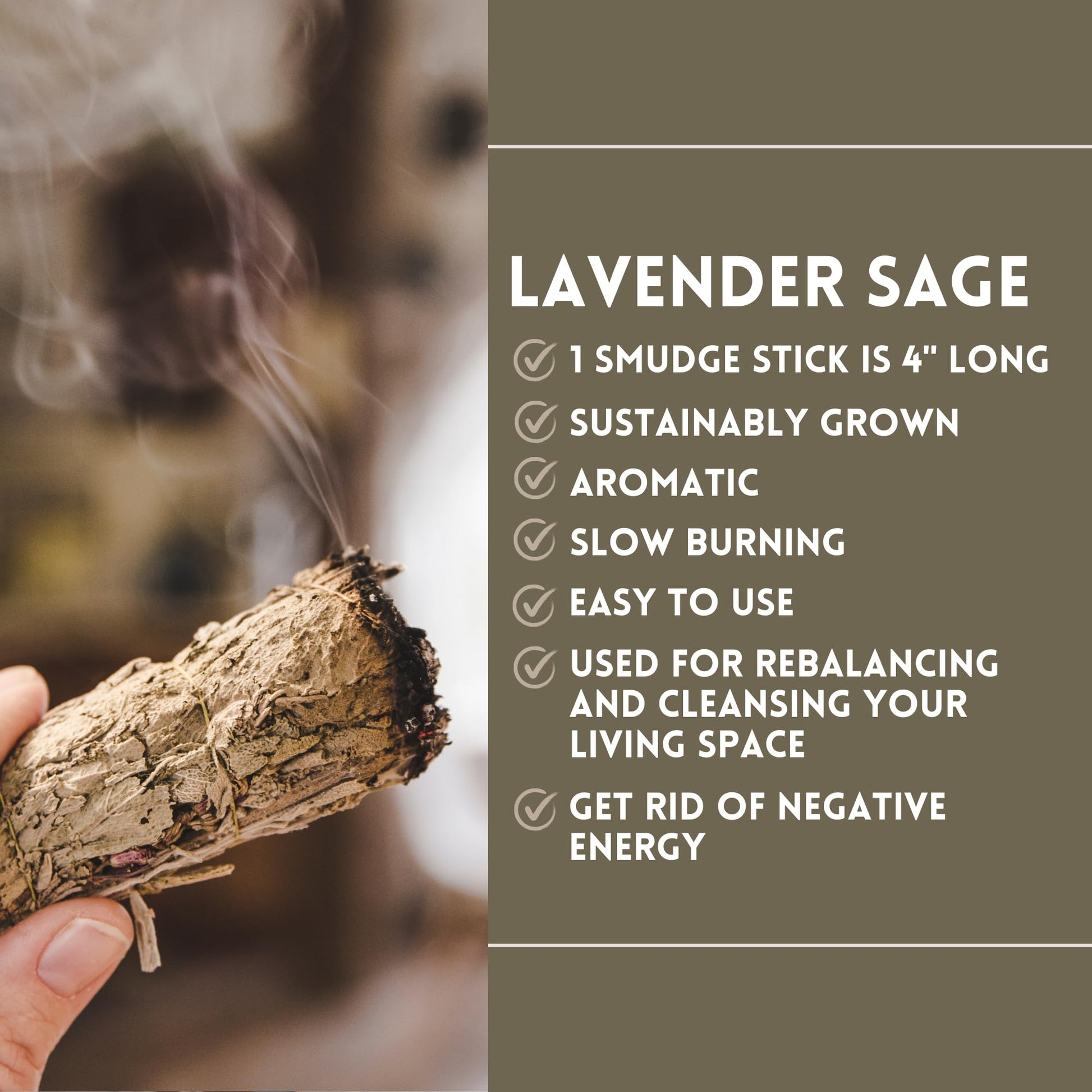 - STARTER KIT INCLUDES: 4" Lavender, Palo Santo stick, 4" Sweetgrass Braid, 4" Turkey Feather, and Smudge Guide.