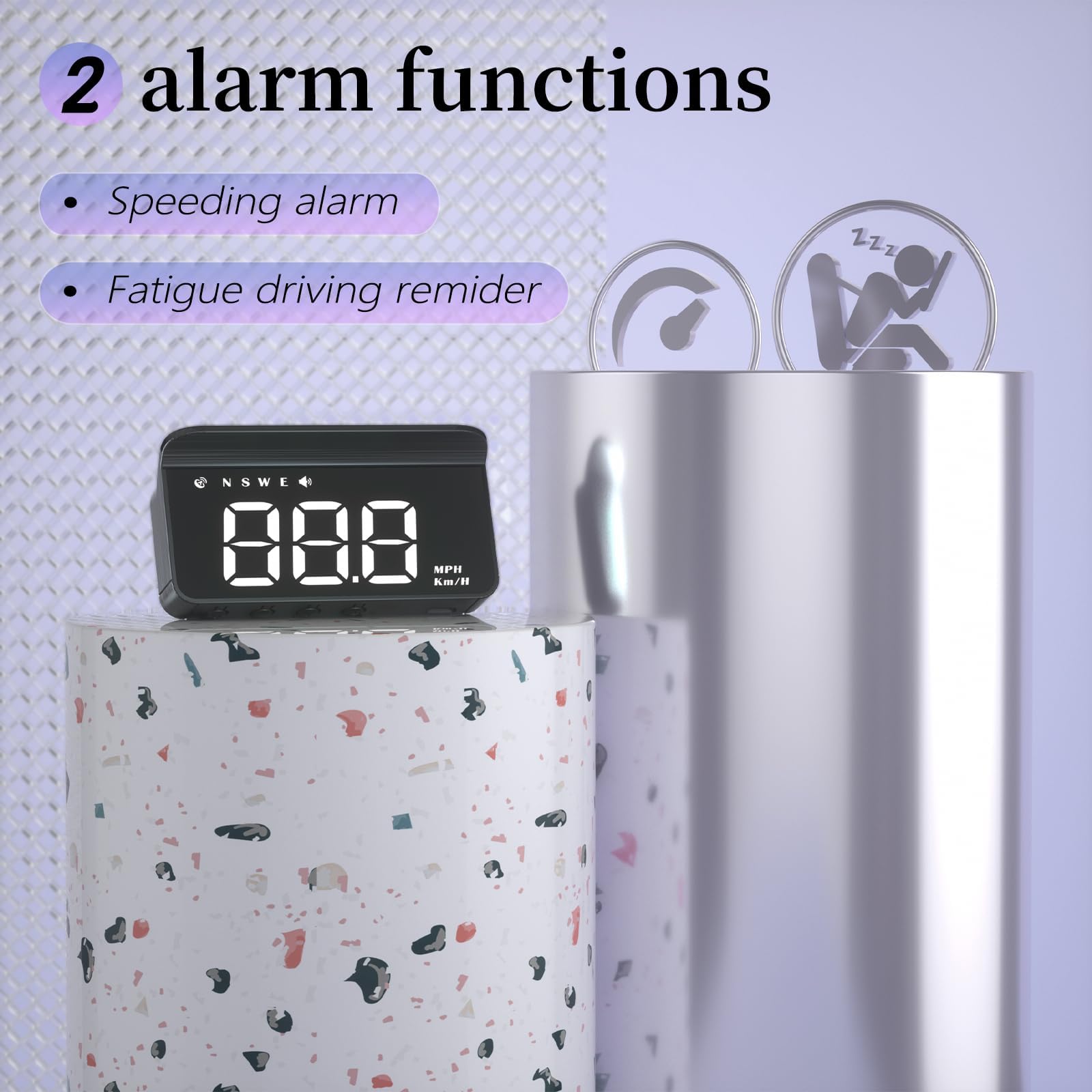 - 【Main functions】M1 HUD can display the speed, GPS compass shows the direction, also can show the driving direction, also has a speeding alarm and fatigue warning function, the speed has MPH and KM/H two kinds of units, can be adjusted in the settings. When speeding or continuous driving time is too long, the product will beep to remind the driver, like a safety monitor, always remind the driver to pay attention to the safety of driving, placed in the car a mini M1 HUD will certainly add a lot of fun.