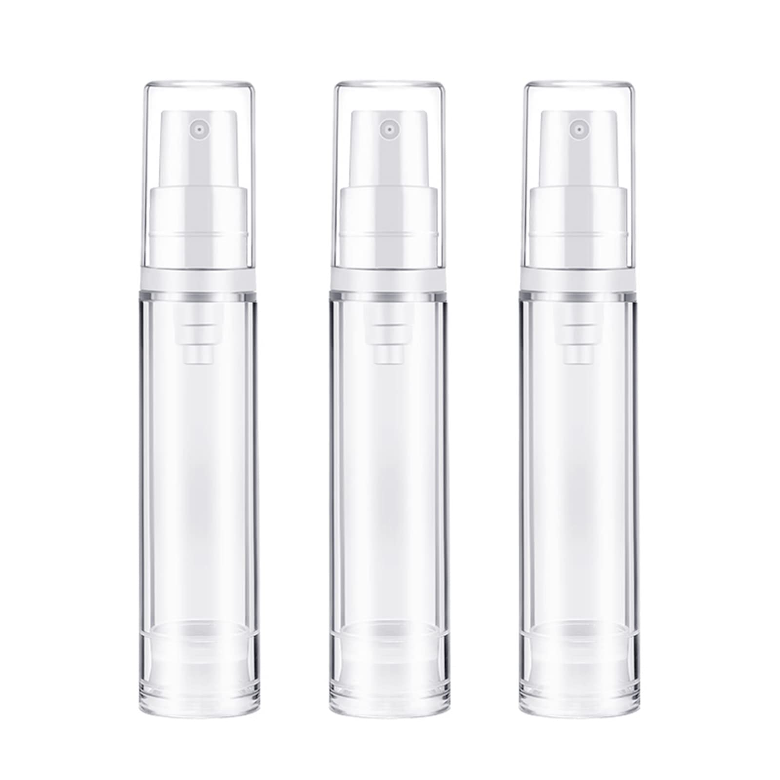 BlingKingdom 3pcs Empty Airless Pump Bottle Refillable Clear Travel Lotion Pump Containers Vacuum Cosmetic Container Vacuum Press Pump Bottles for DIY Foundation, Gel, Essence, Moisturiser (10Ml)