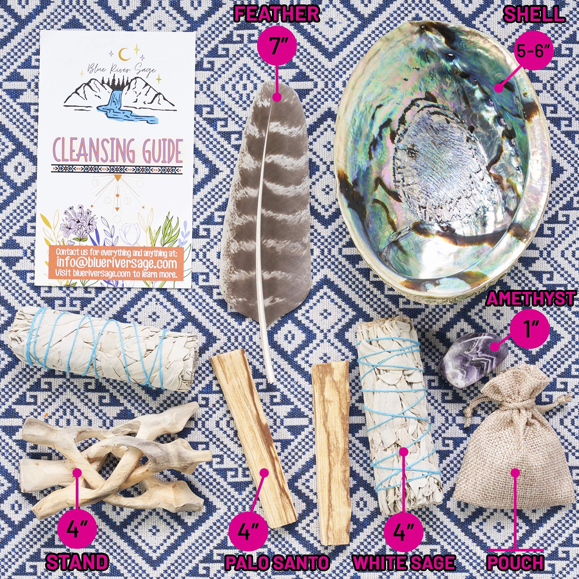 Blue River Sage Smudging & Energy Cleansing Kit with Amethyst, White Sage, Palo Santo, Abalone Shell, Stand & Guide (Regular)