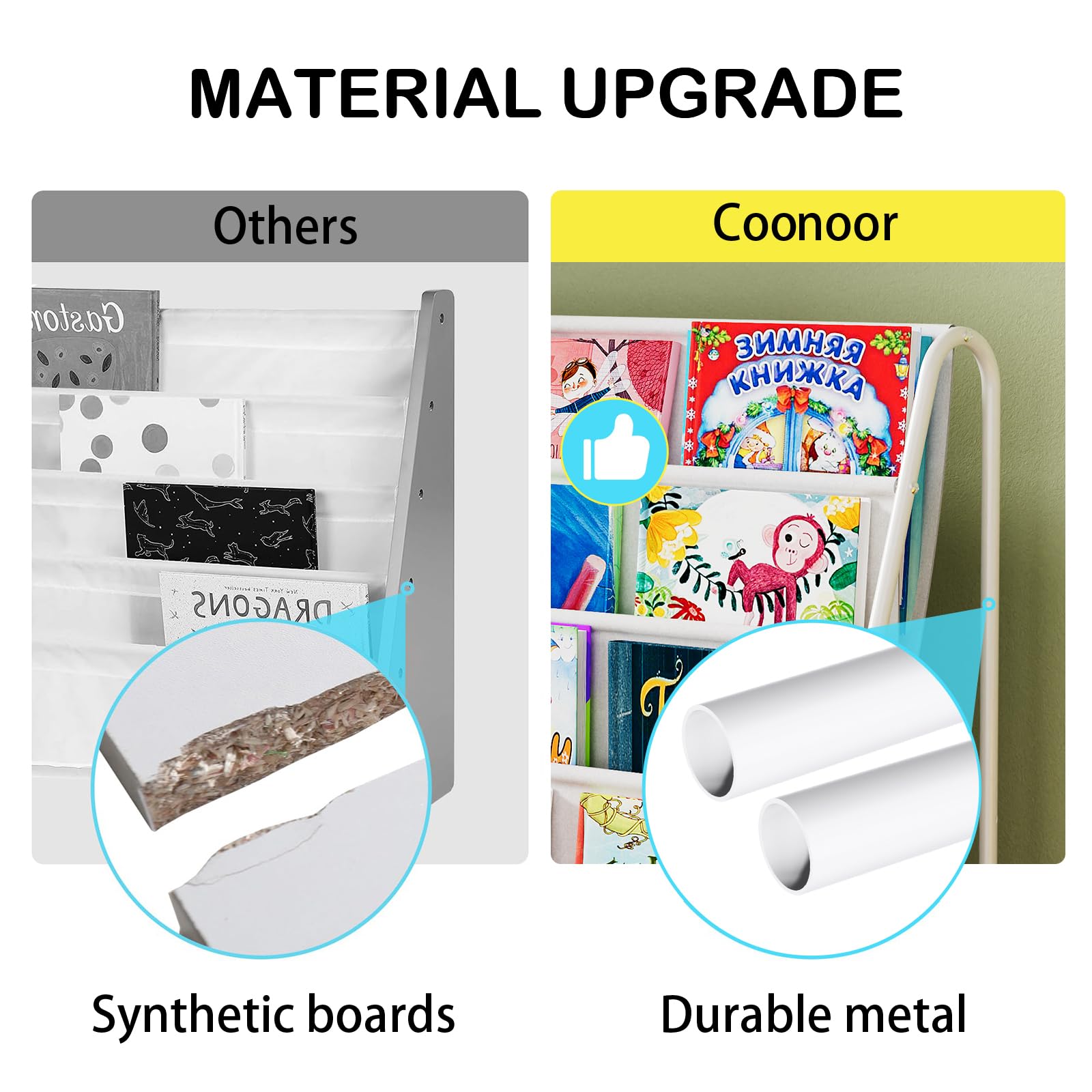 Coonoor Kids Bookshelf - 4 Tier Small Bookcase for Kids Room, Metal Nursery Book Shelf, Sling Book Shelf and Toy Storage for Children, Idea Gifts for Boys and Girls