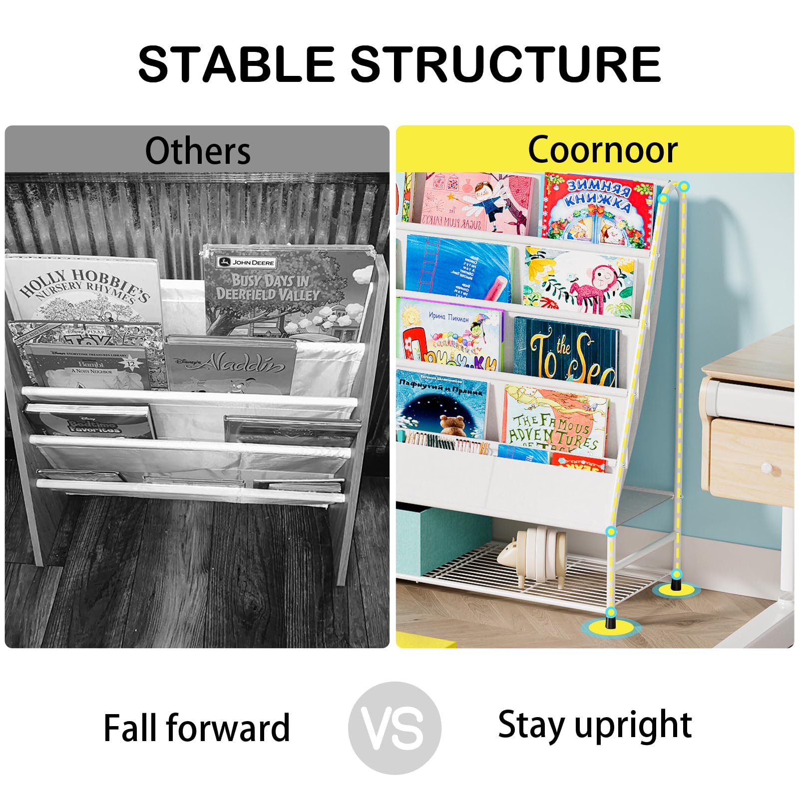 - [ Multiple Uses ] Our bookshelf is suitable for kids room, kindergarten class, living room, it can hold board books of different thicknesses, children's magazines. Beside this, it's a good choice for a Christmas/birthday gift for boys and girls.