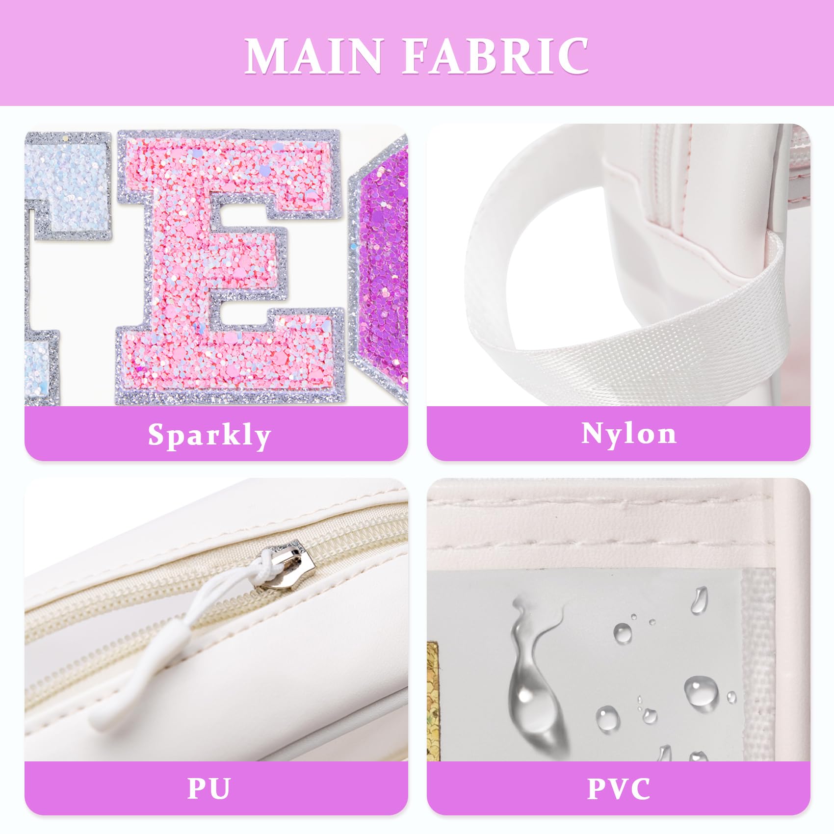 - [Clear zipper pouch with glitter letter patches TECH] Different with chenille varsity letters, TECH patches made of glett fabric, sparkling shining in the sunshine and lights, colorful trending fashion decorations for teens girlfriend mother mom mum women bags in 2023.