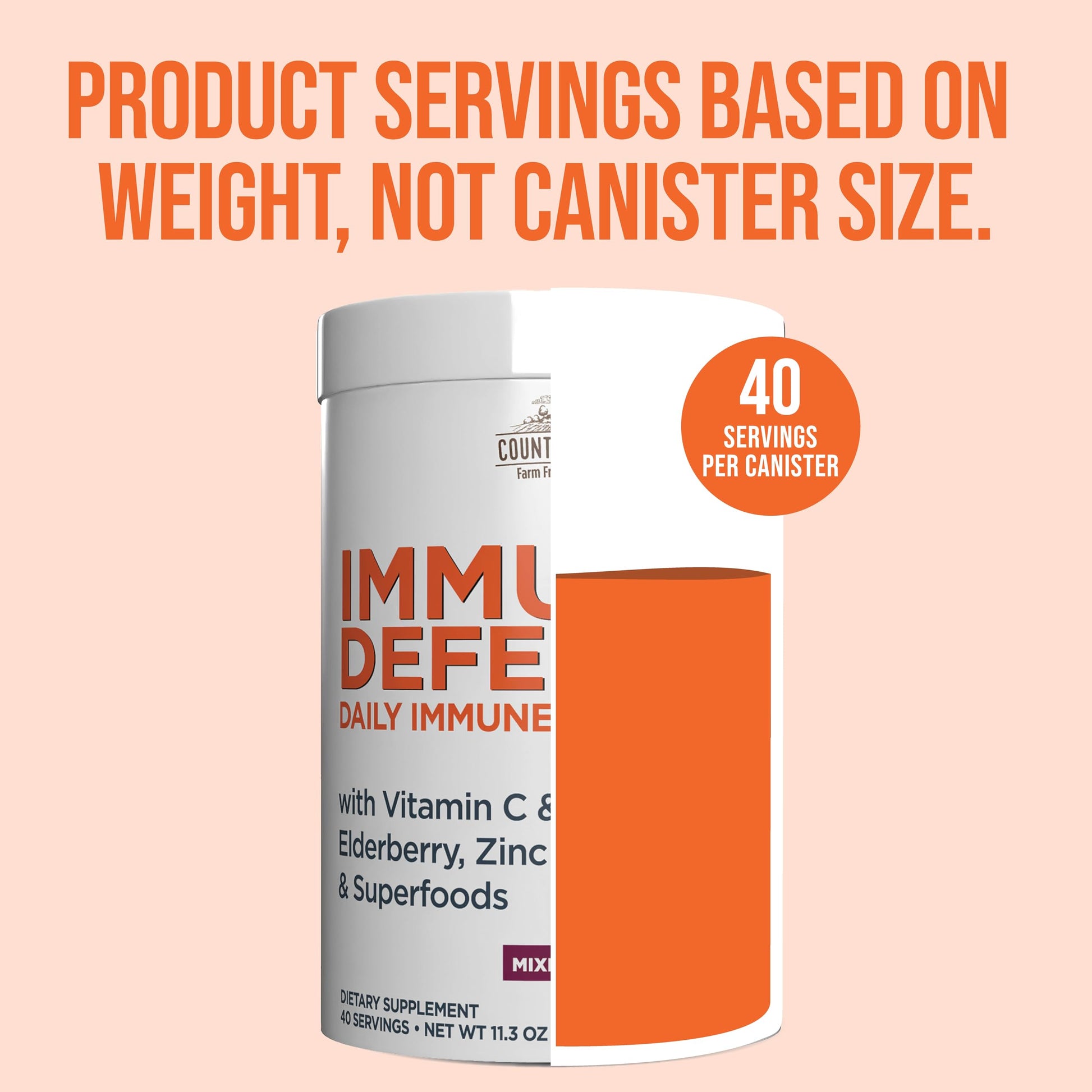 Details: Country Farms Immune defense superfoods is also packed with 1, 111% Daily Value of Vitamin C and 182% Daily Value of zinc for maximum benefit. Your body's immune defense starts with Vitamin C, a powerful antioxidant that supports immunity. Zinc is commonly used to support wellness, while elderberry and mushrooms have been used for centuries to support immunity. Thanks to its blend of probiotics and prebiotic fiber, Country Farms Immune defense superfoods helps support digestive health.