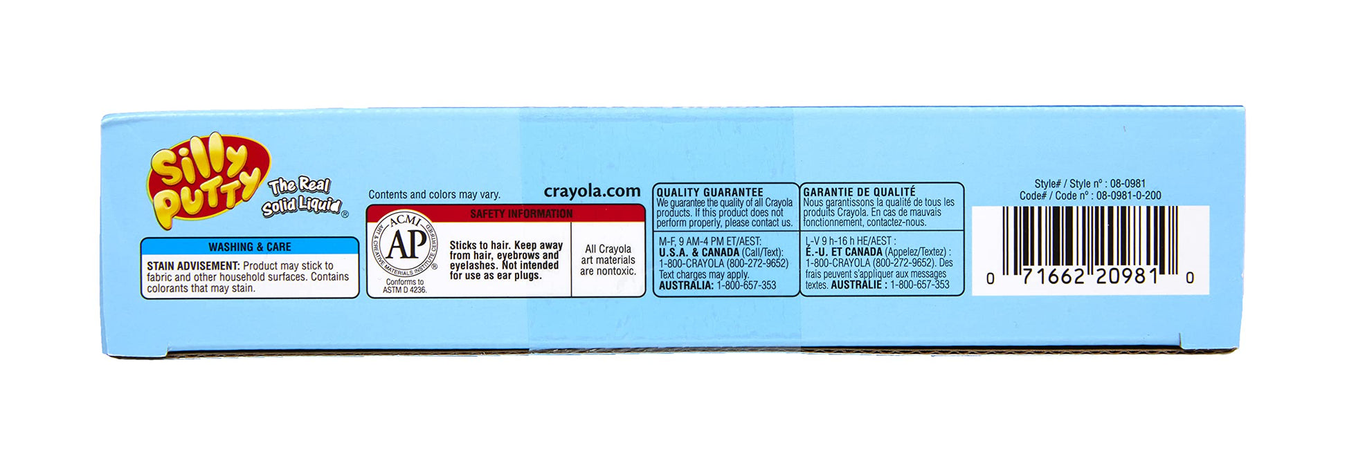 - CRAYOLA SILLY PUTTY BULK: Features 24 Putty Toys including Original Putty (3), Silly Scents (6), Lava (2), Super Bounce (3), Metallic (4), SuperBright (3), and Glow (3).