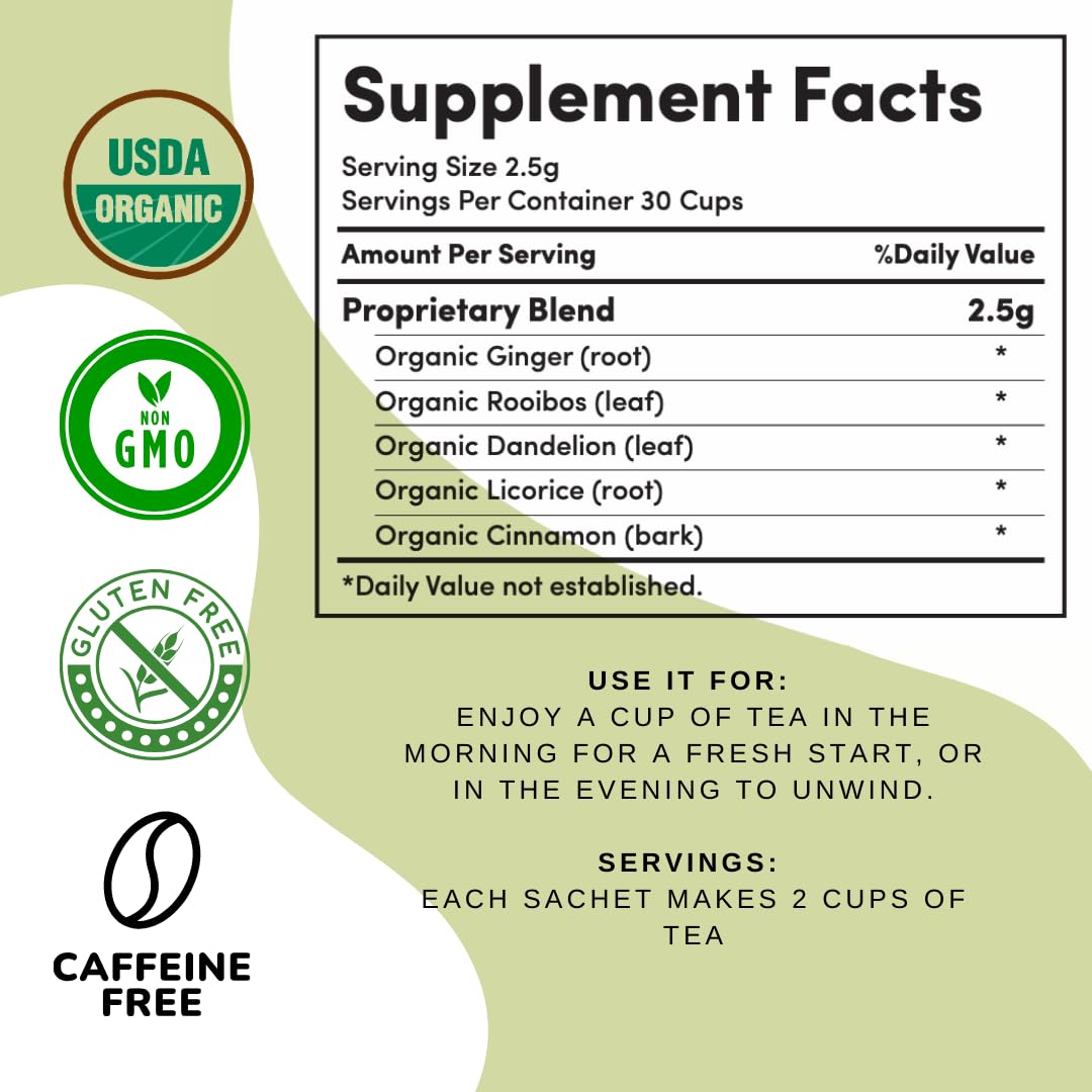 - Organic Ingredients – Our liver cleanse tea is packed with organic ginger root, rooibos, cinnamon, licorice, and dandelion. It's a simple blend made with real ingredients for real results. Fits most diets, including keto, Whole30, Paleo, AIP diet & autoimmune protocol, and vegan.