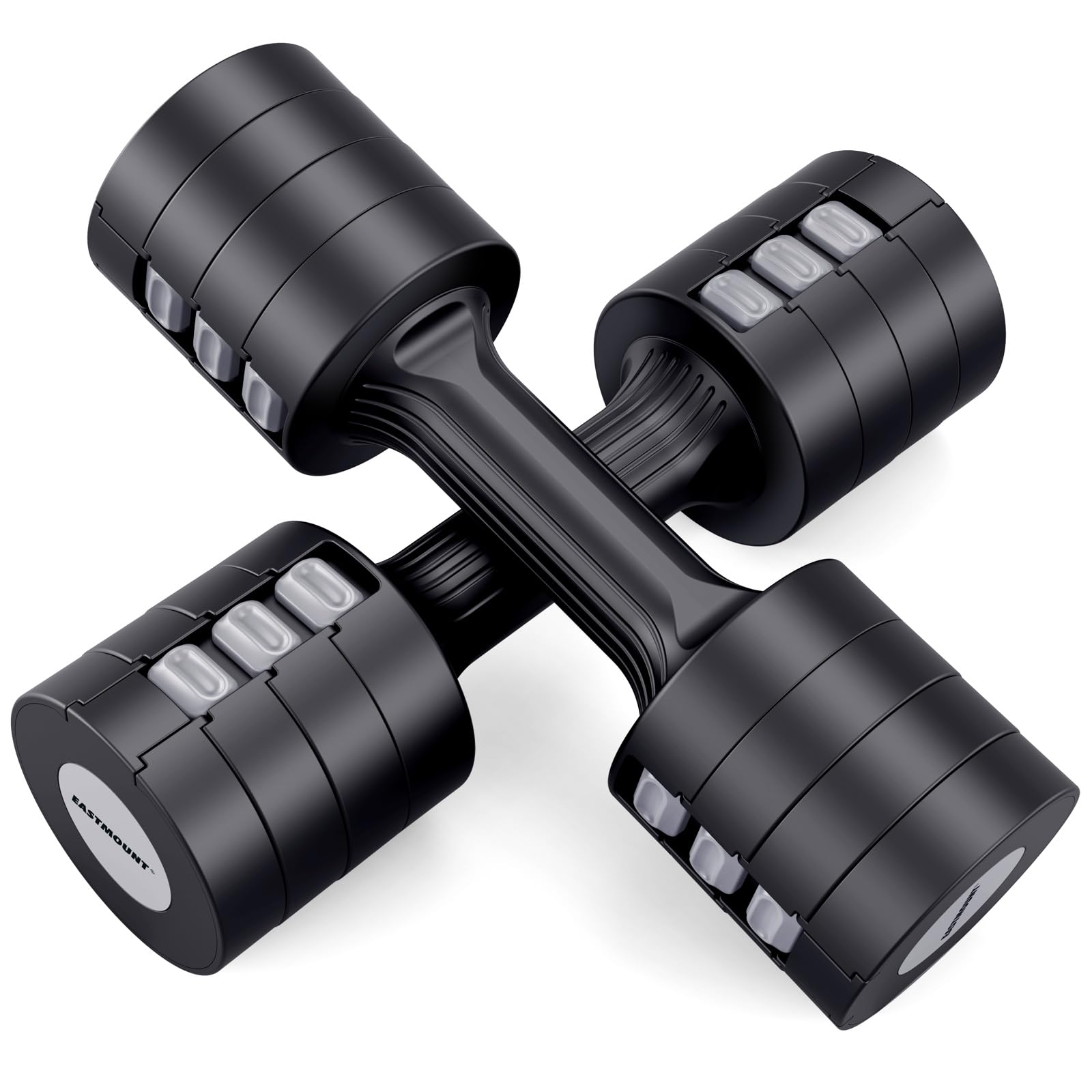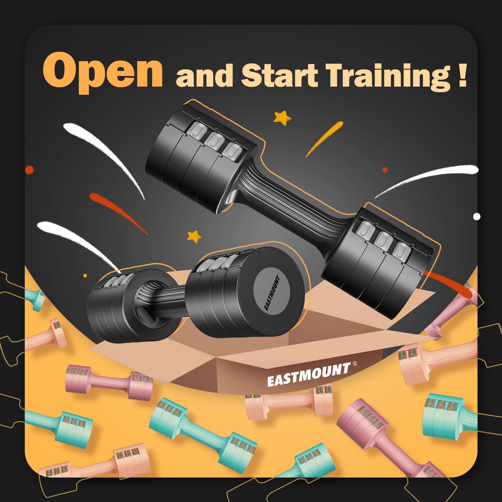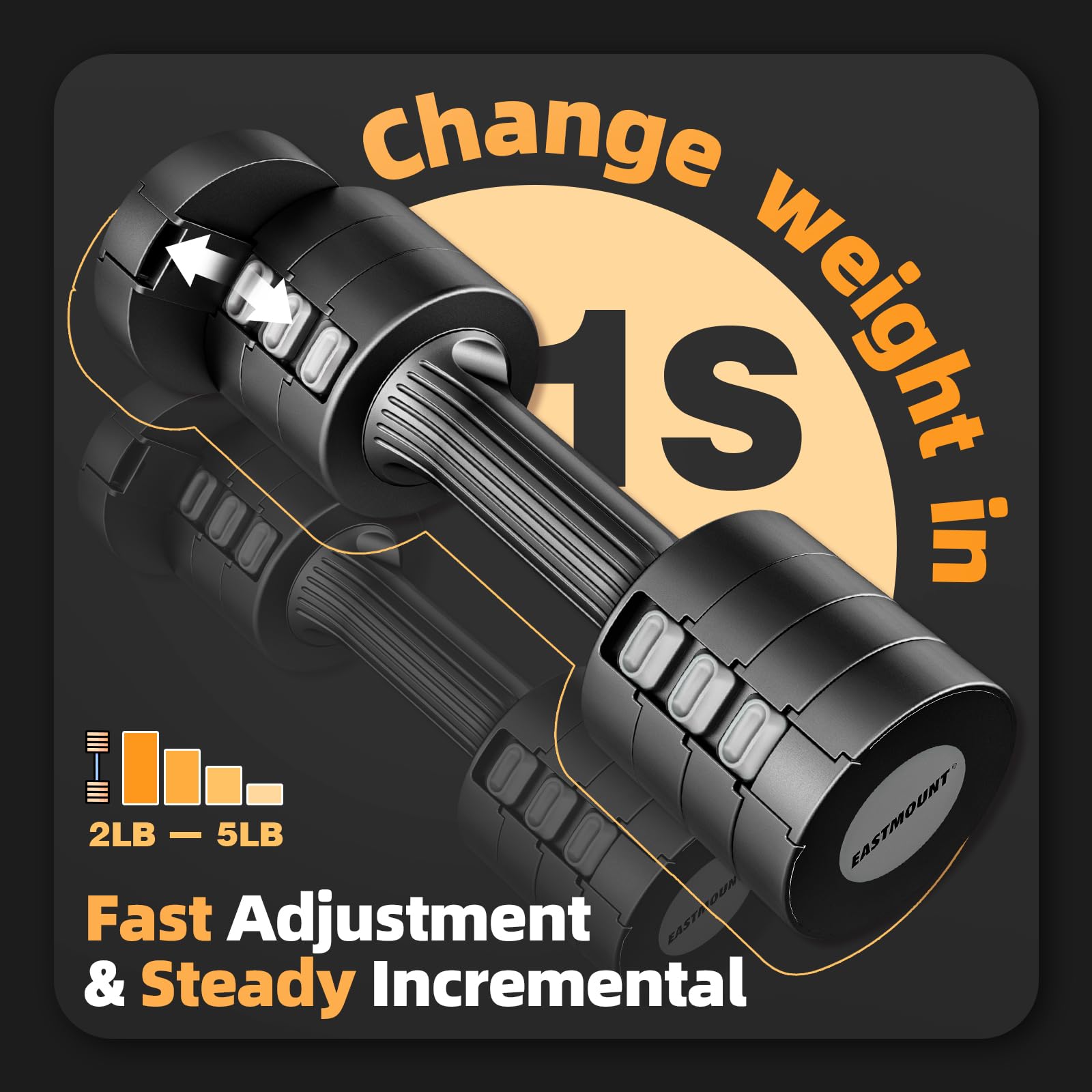 EAST MOUNT Adjustable Dumbbells 5 lb Dumbbells Set of 2 / Pair 10 lb Total Free Weights 6 in 1 Women Hand Weights for Home,Office,Gym Exercise Training 2lb 3lb 4lb 5lb Fast Adjust