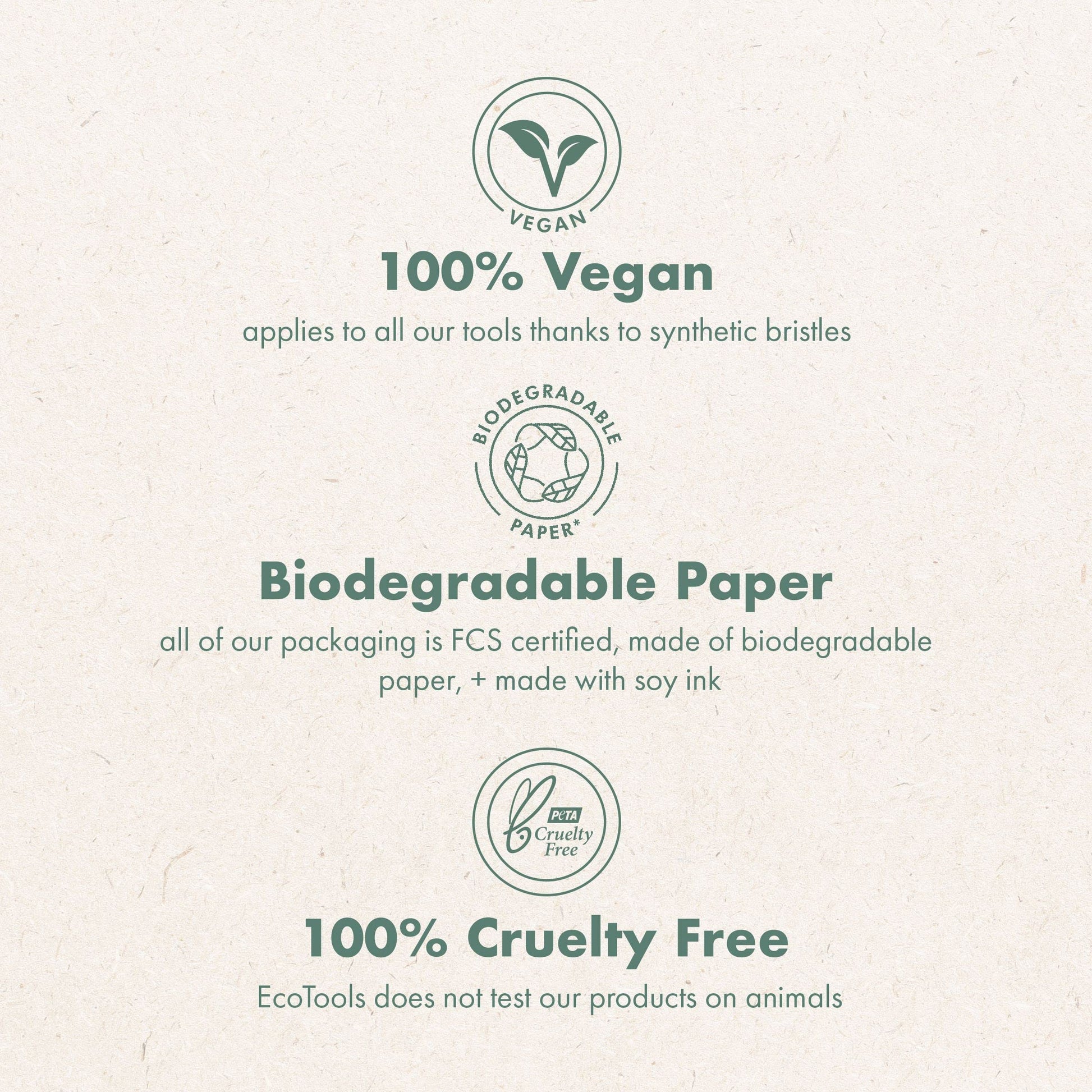 - Eco-Friendly, FSC-certified compostable paper packaging* & Always 100% vegan and PETA cruelty-free- EcoTools products are never tested on animals