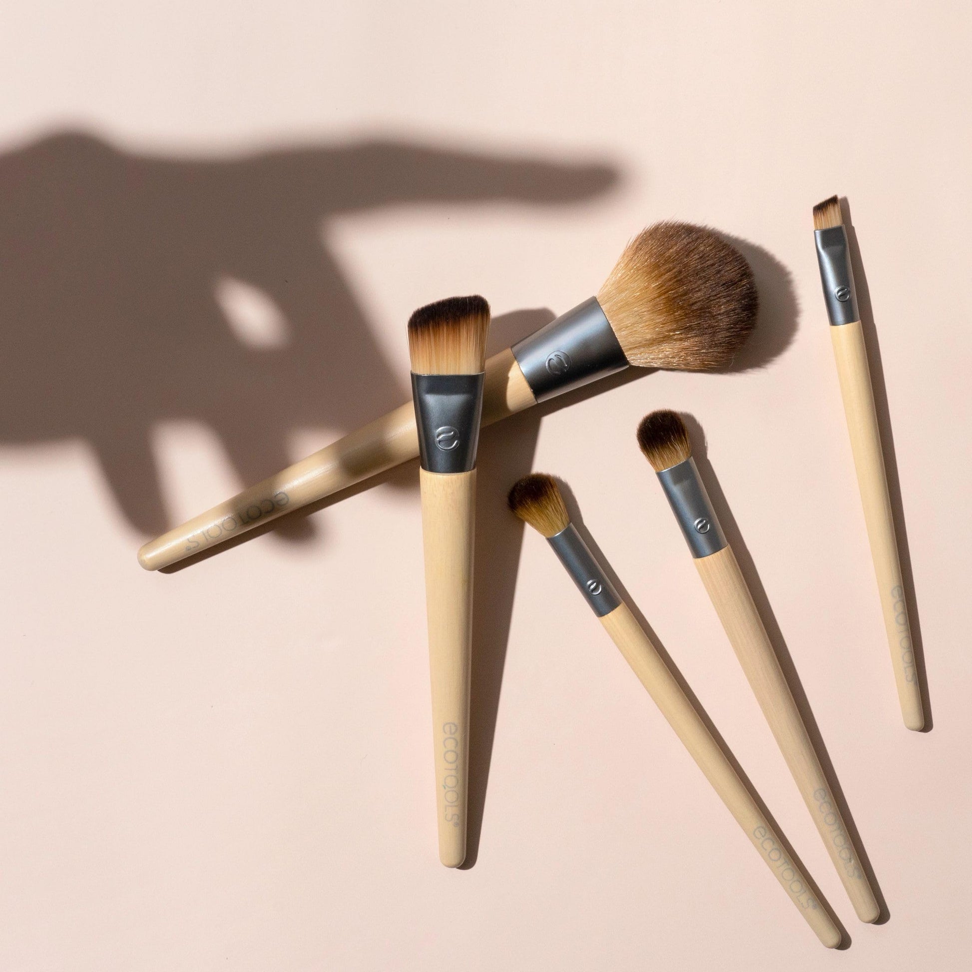 - EcoTools Start The Day Beautifully Makeup Brush Set includes: (1) Angled Liner Eye Brush, (1) Defined Crease Eye Brush, (1) Full Blush Face Brush, (1) Blurring Concealer Brush, (1) Angled Foundation Face Brush, and (1) Storage Tin