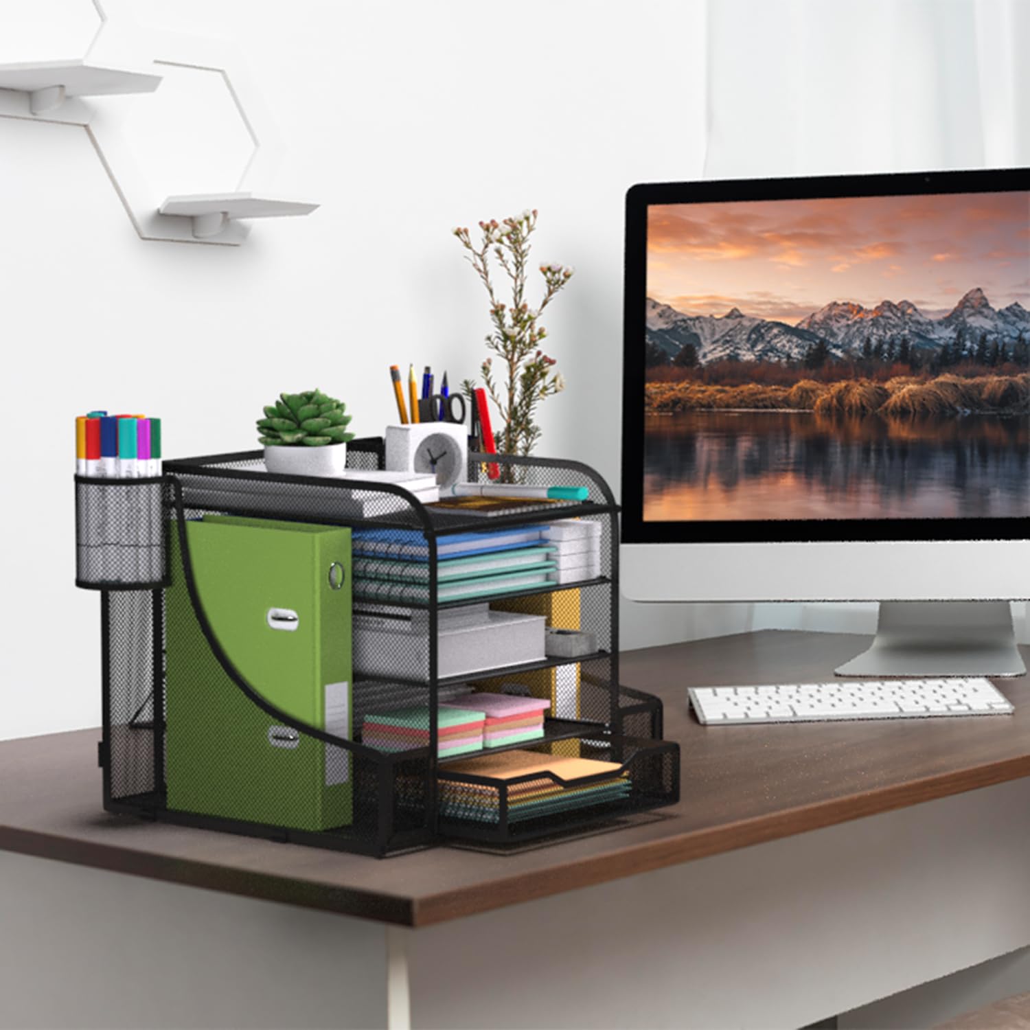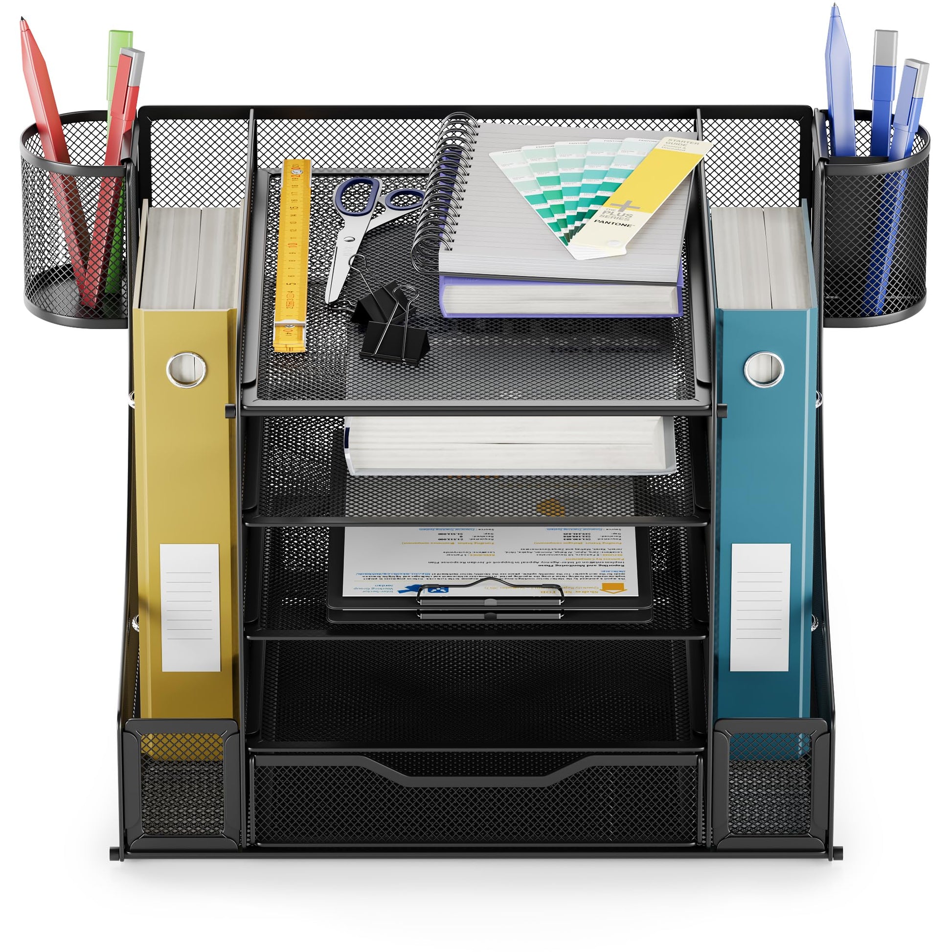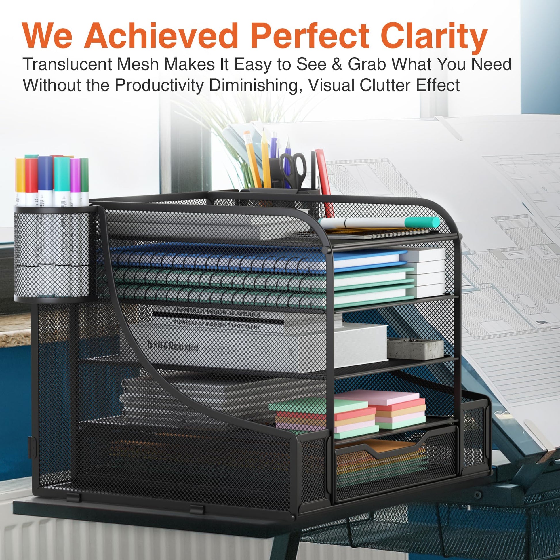 EVOOMI 5 Tier Mesh Desk Organizer PLUS - The Upgraded Time, Space & Sanity Saving Desktop Organizer System for Productivity Success - Ideal Pencil File Paperclip Post It Holder Mail Folder Organizer