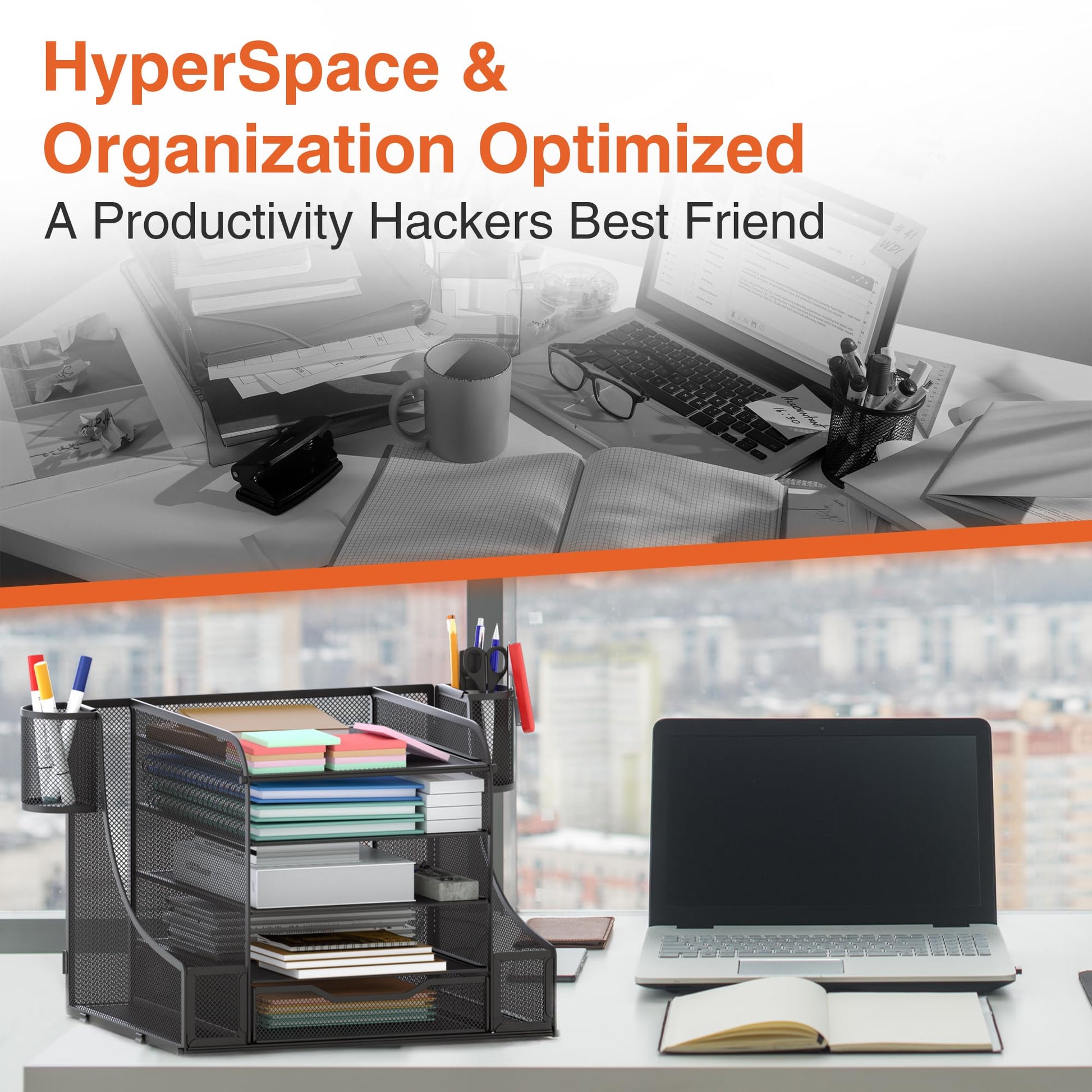 - Won’t Make You a Sardine - Hyper Space Optimized - A file folder best friend, and an entrepreneur dream, this is the Desk Organizer to get if you’re a time-hacking, productivity-hacking genius, who wants to leverage your deskspace to increase throughput, not constantly moving obnoxiously large desk organizer out of your way.