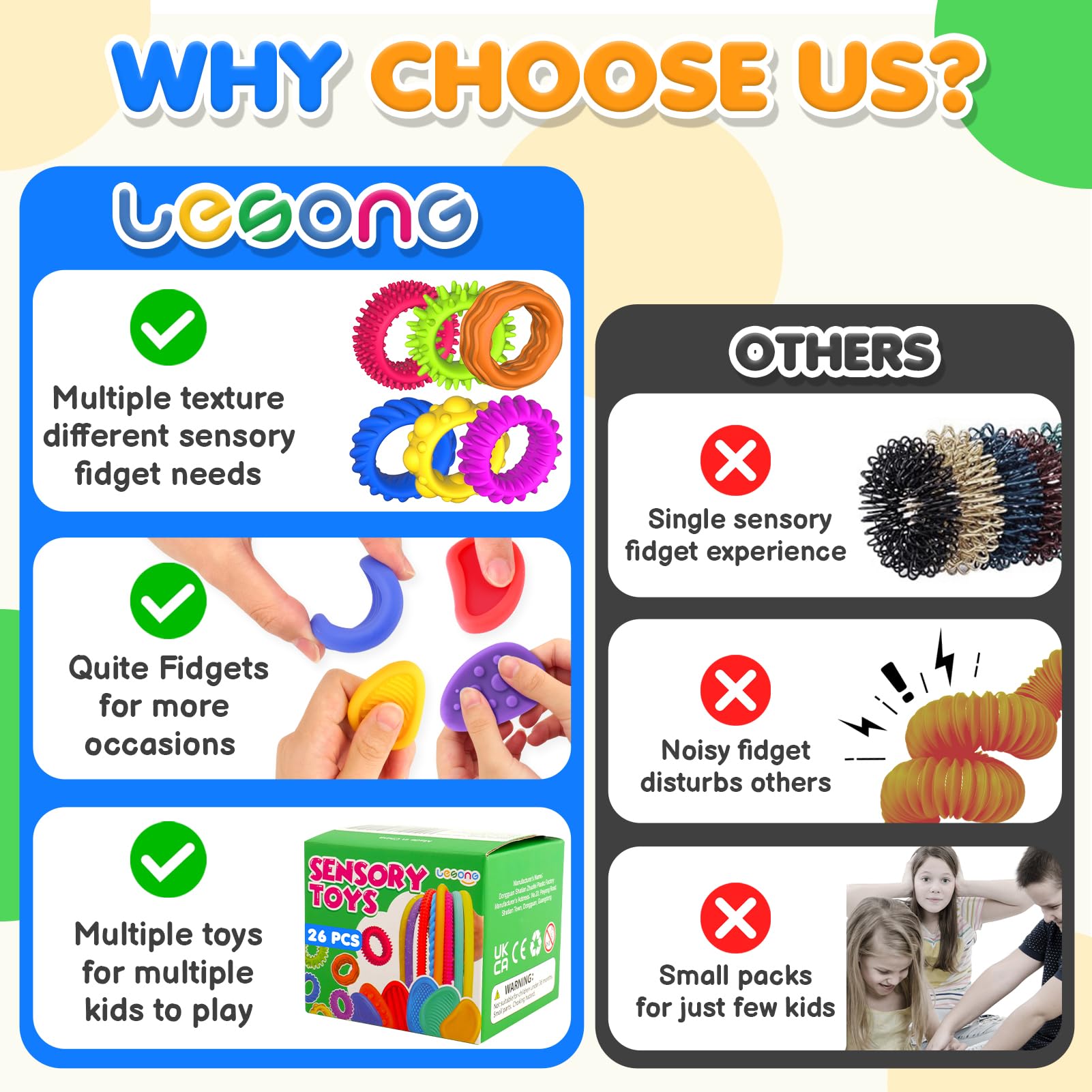 - Party Favor & Christmas Stocking Stuffers Gifts: Soft, durable, and washable Multi-Item Fidget Toy Packs with safe material, lightweight and vivid bright colors, making they great sensory gifts, birthday party favors, goodie bag stuffers, prize box toys for the classroom, desk fidget toys, carnival prizes, fidget collection treasure box toys, and quiet travel toys. LESONG is a professional brand in sensory toys. You can trust us for our unmatched quality and customer satisfaction.