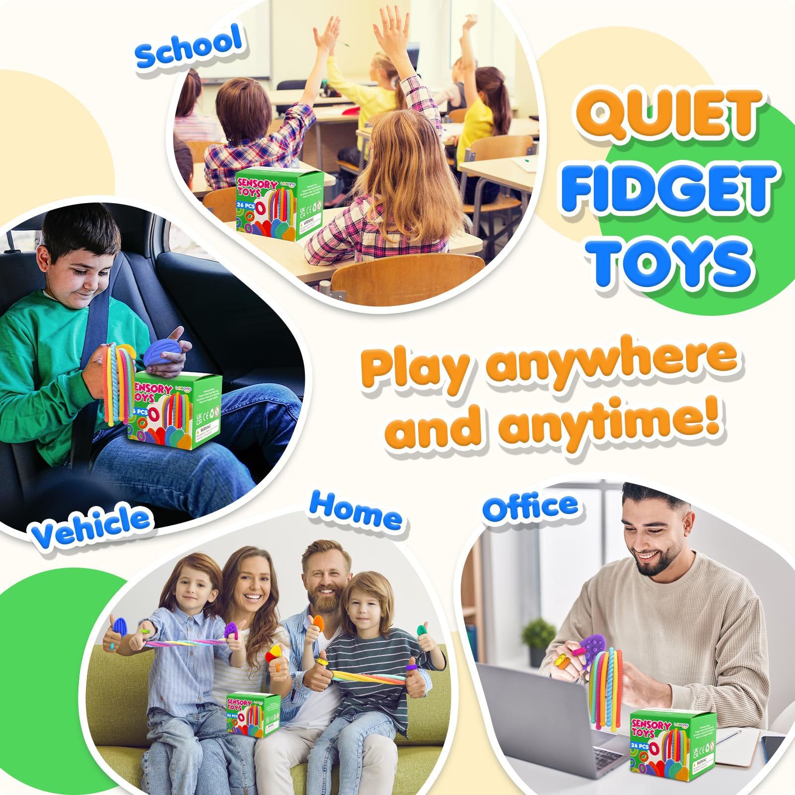 Fidget Sensory Toys for Kids: 26 Pack Quiet Squishy Fidget for Classroom Students Prizes- Textured Soft Stone Fidgets Rings Stretchy Strings for Autism Calming Down Tools - Party Favors,Treasure Box