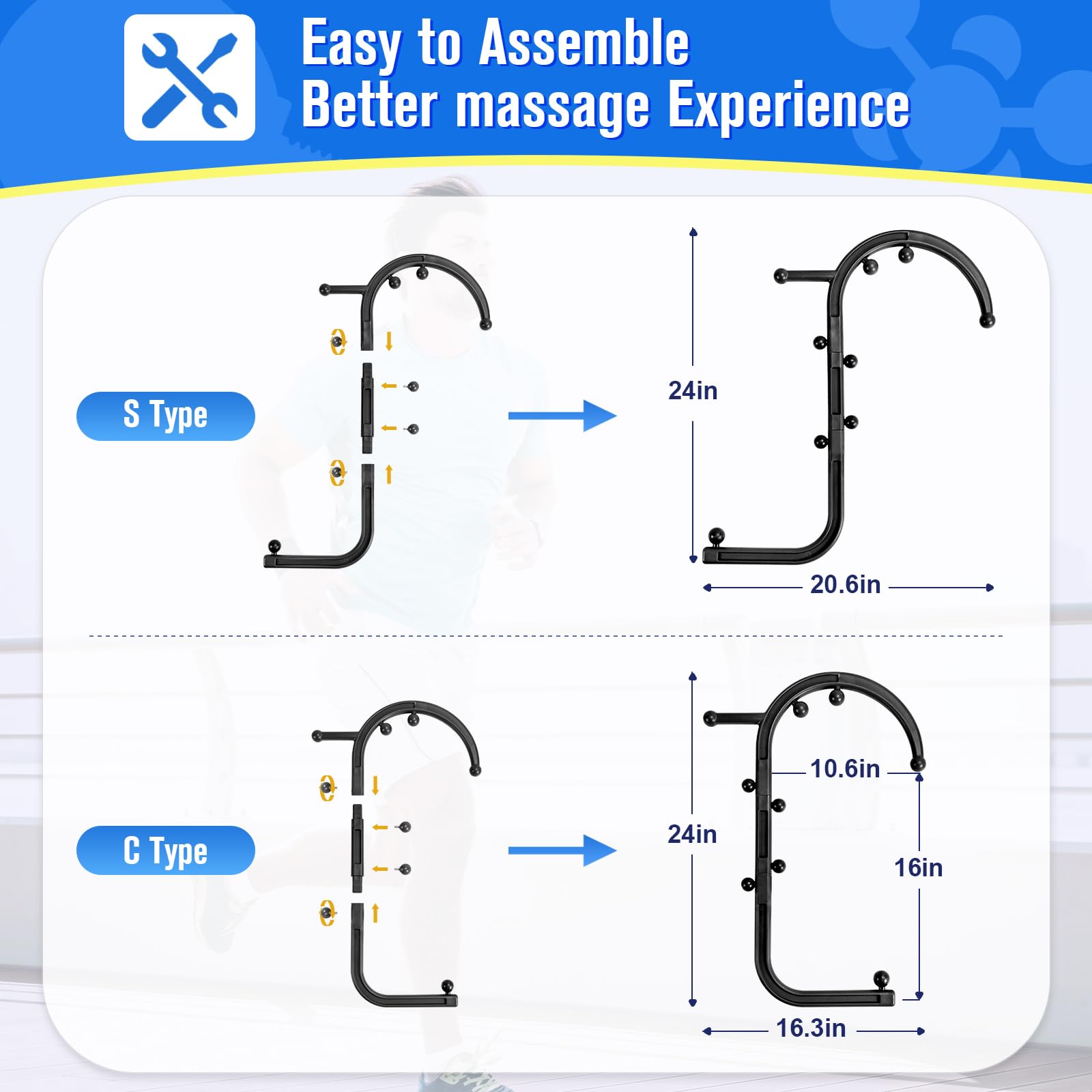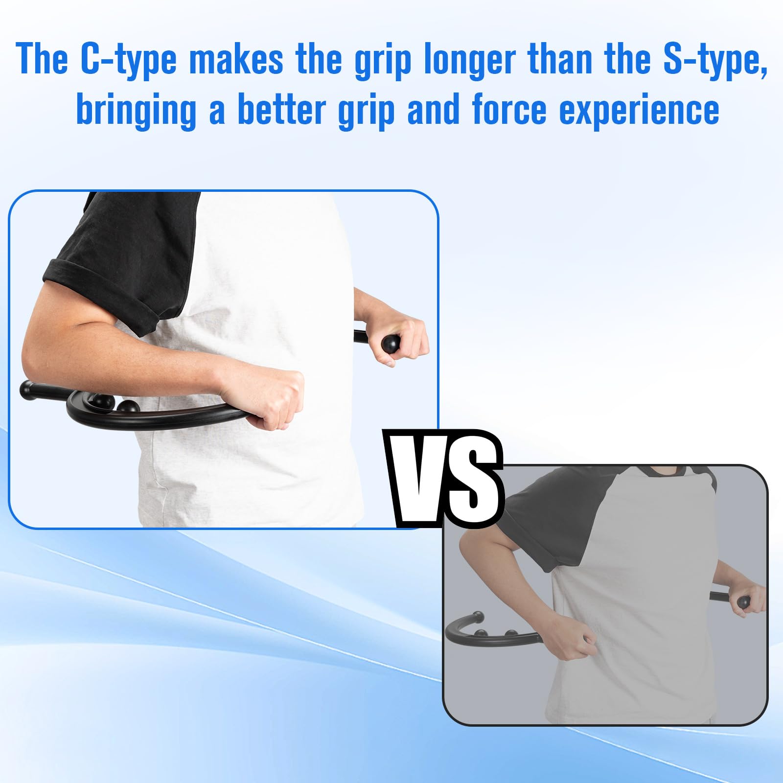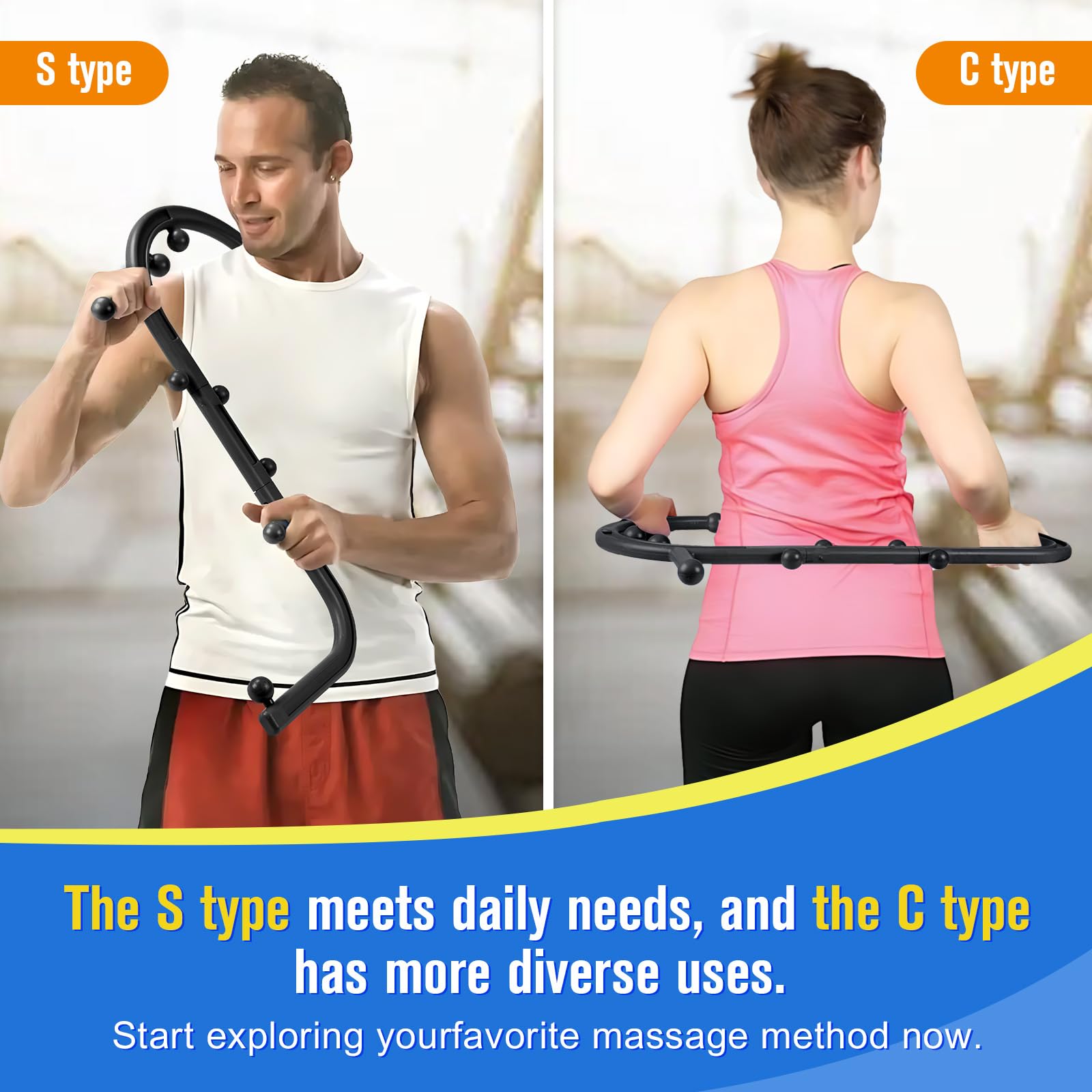 - Two Shapes Trigger Point Massage Tool - Our back and neck massager can switch freely between S-type and C-type. The C-type design can optimize the grip and improve the force mode, and the unique design allows you to reach all muscle groups from the neck to the feet, especially those hard-to-reach trigger points in the back. When you release the pressure, you will feel the muscles relax and fresh oxygenated blood flow in