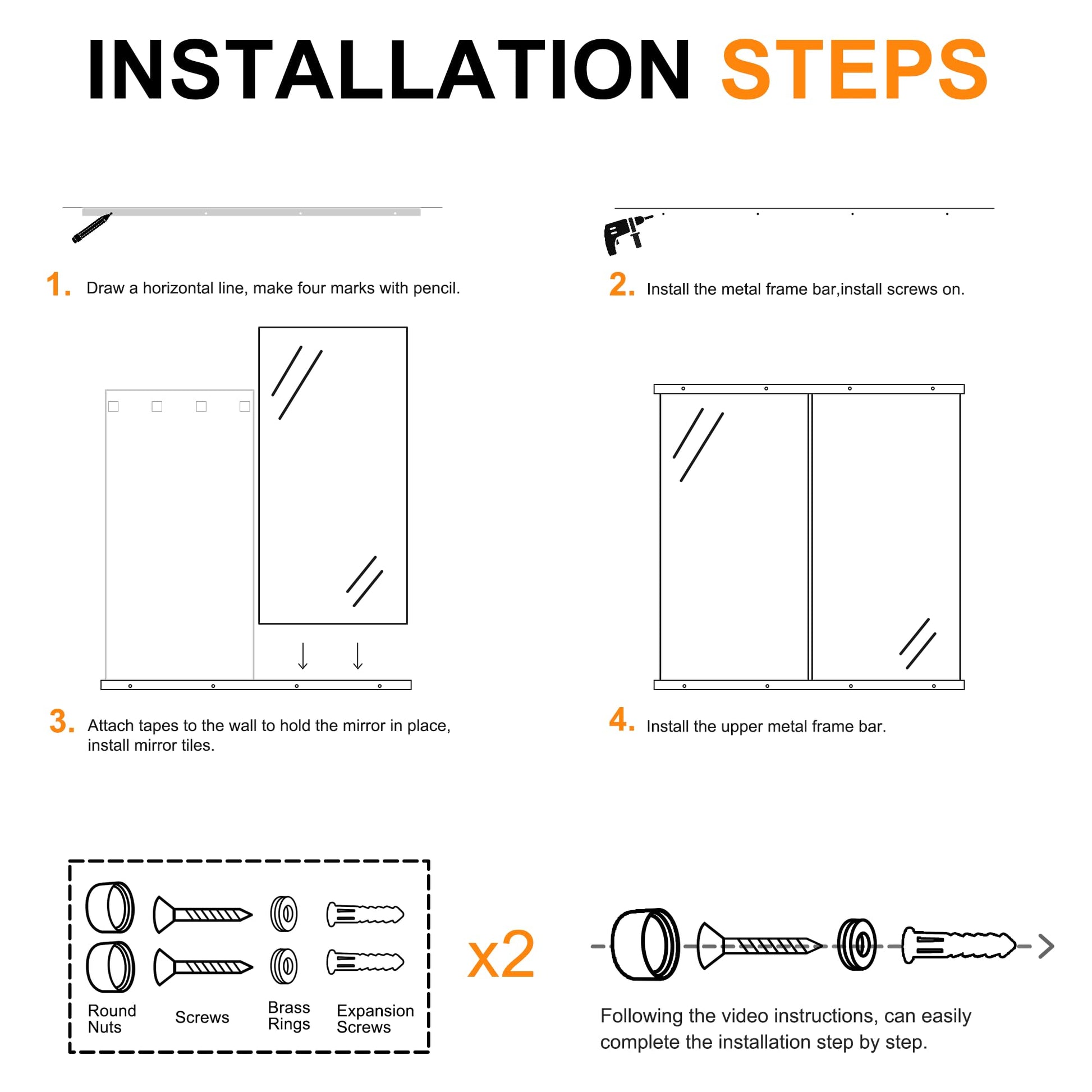 - EASY TO INSTALL: Just follow the video, step by step, complete the installation. Home gym mirrors are suitable for most kinds of wall surfaces like tiles, brick, wood, painted wall.