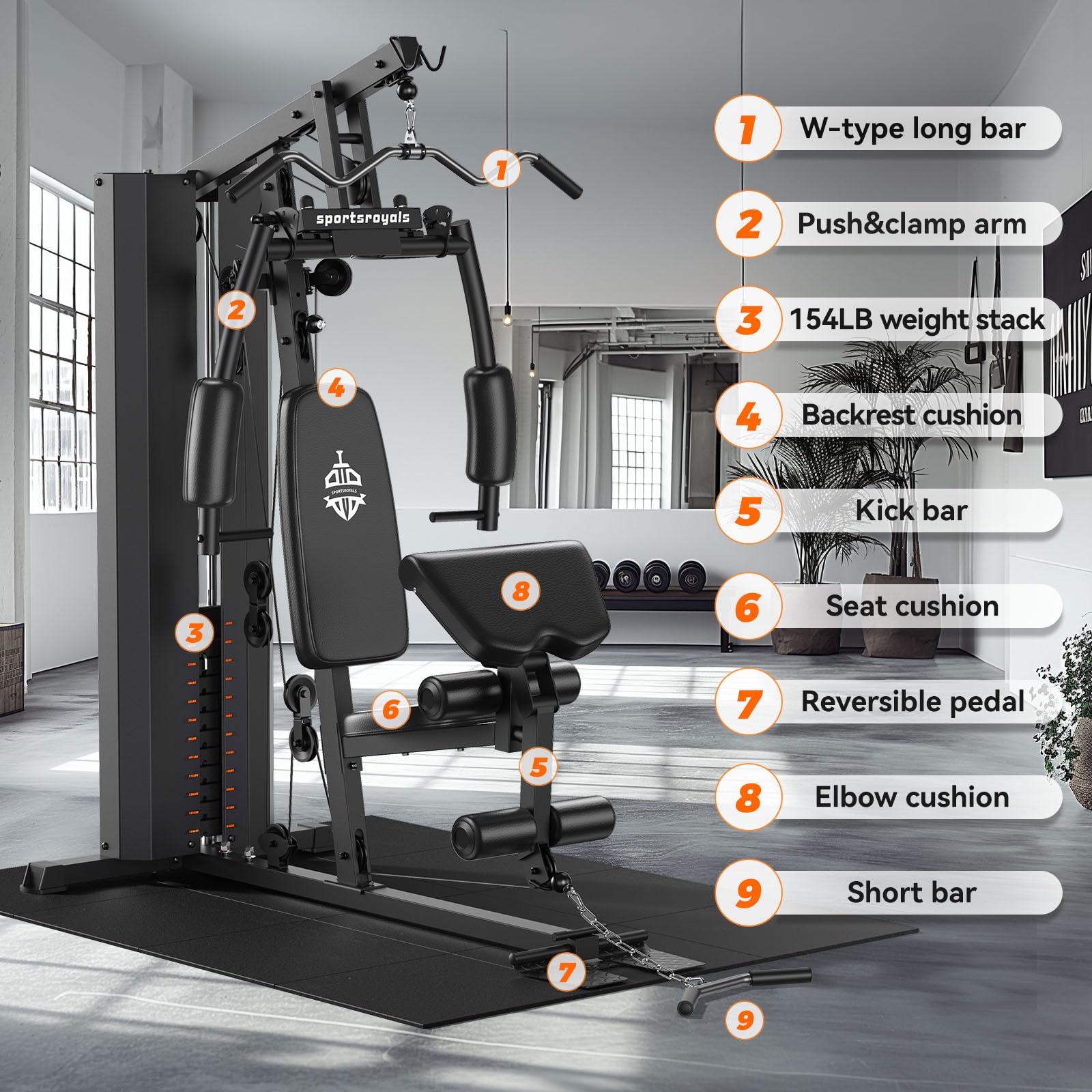 Home Gym, Multifunctional Home Gym Equipment, Workout Station with 154LBS Weight Stack, Exercise Equipment for Full Body Traning with Pulley System