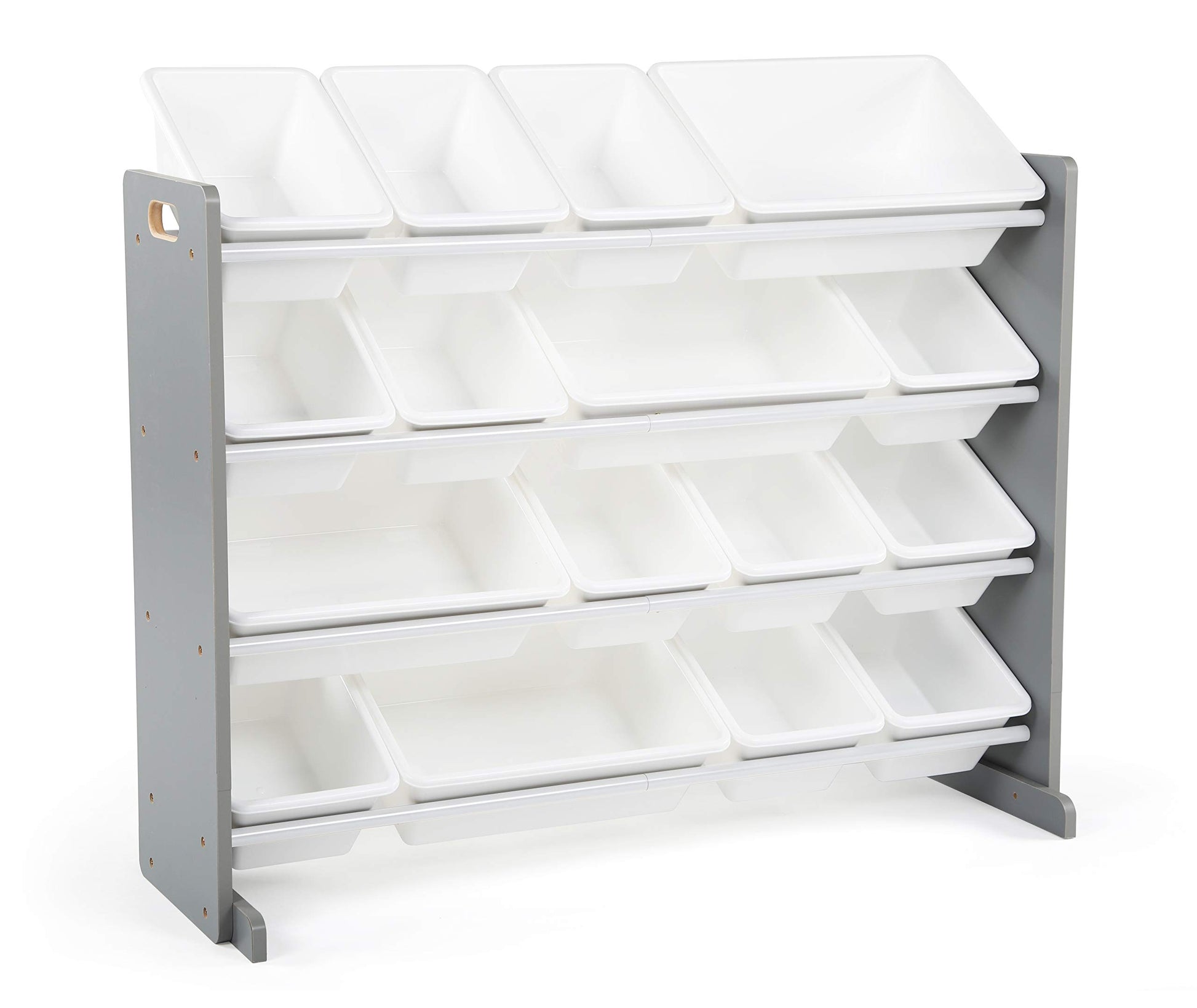 - Supersized Storage Solution: Transform clutter with this 16-bin toy organizer. With 12 standard and 4 large bins, it offers 25% more storage than standard organizers, making it perfect for large toy storage and keeping your kids' space tidy.