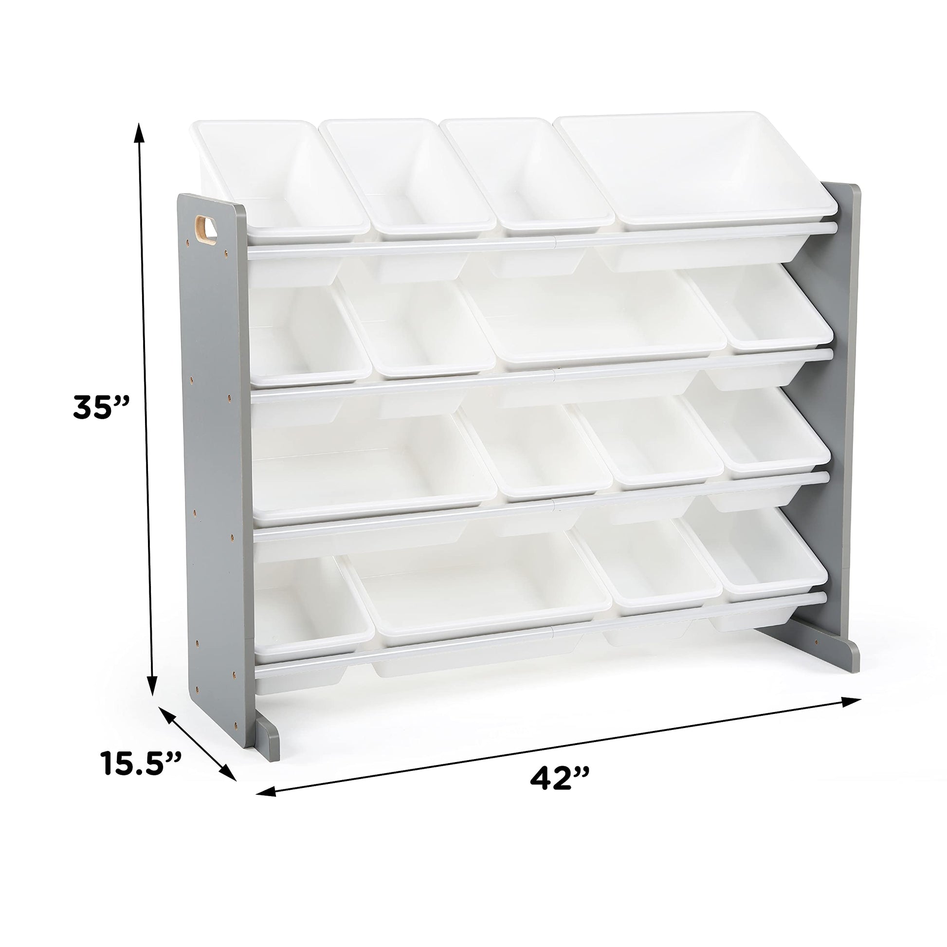 Humble Crew Supersized Toy Storage Organizer with 16 Removable Bins, Grey/White – Large Toy Storage for Toddlers Ideal for Kids' Rooms, Playrooms, and Nurseries - Modern Toy Bins for Kids