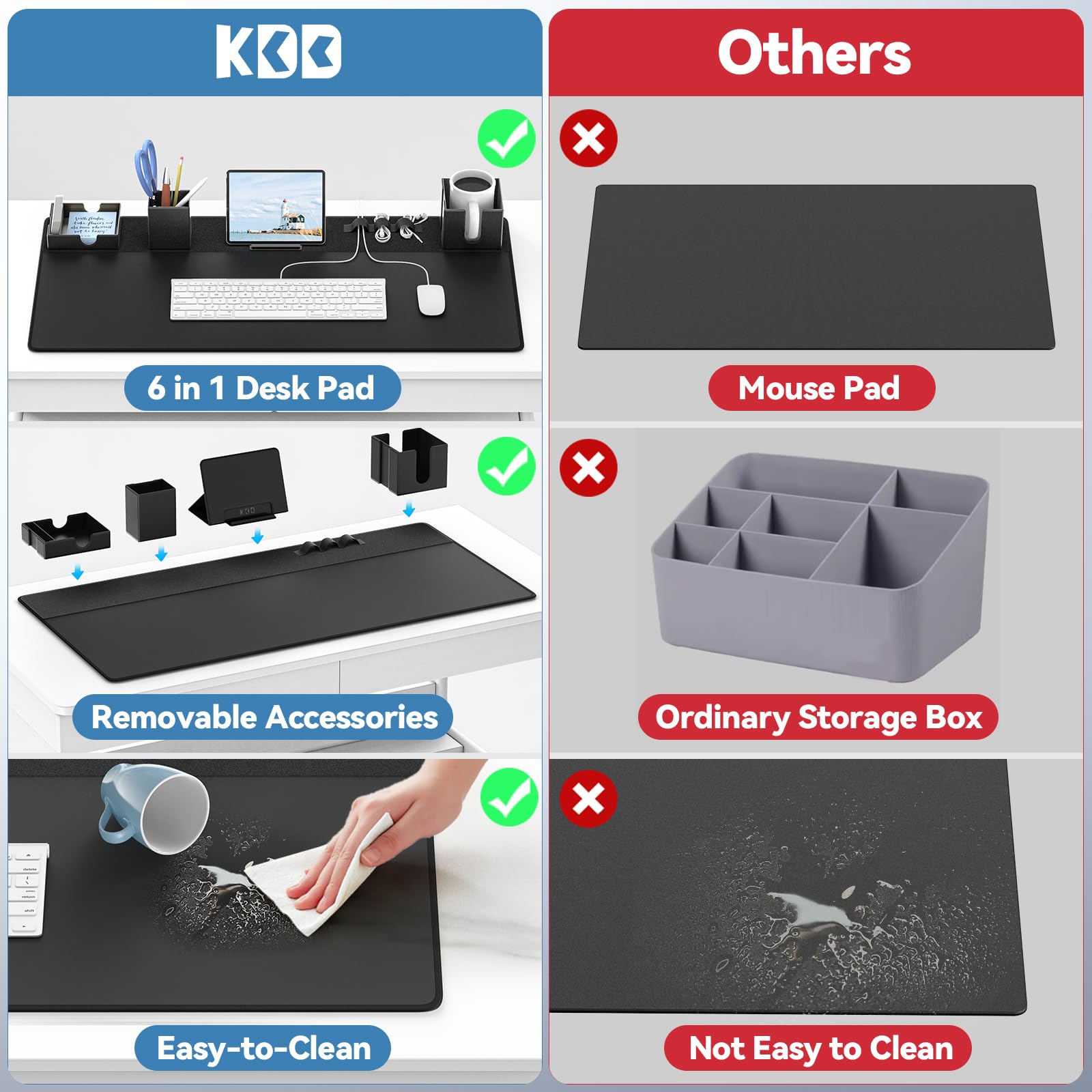 - Multifunctional Desk Organizer Set - This 6-in-1 mouse pad organizer is designed with tablet holder, cup holder, pen holder, cable storage, card slot and sticky note box. Combine the office items you need into one, you don't need to spend time matching office supplies. A KDD desktop organizer set turns your desk into an organized workspace.