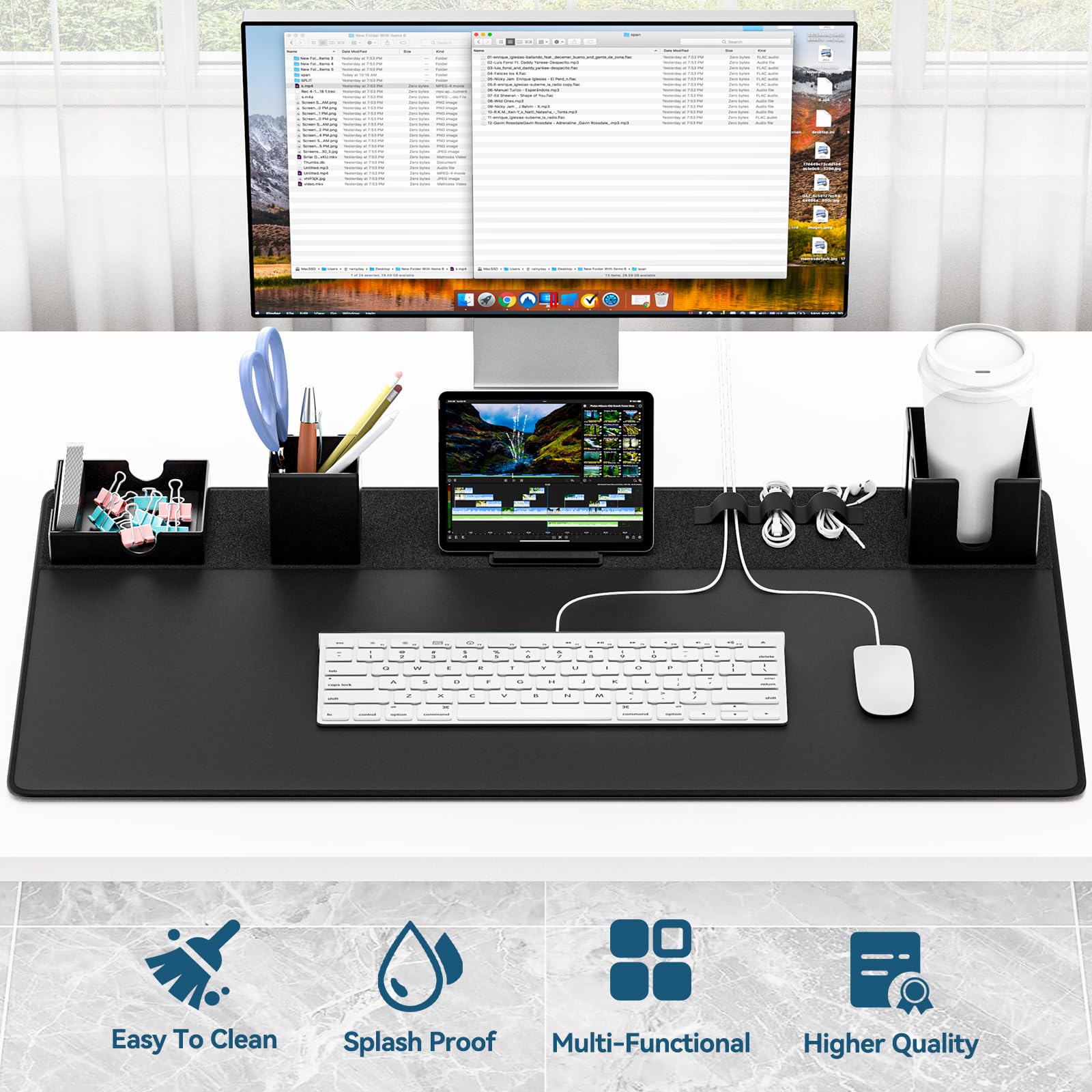 - Easy to Clean & Stylish Appearance - Our desk mat set comes in a black simple and stylish design, beautiful and durable. Accessories such as cup holders and tablet holders are made of high quality PU leather, scratch-resistant and easy to clean, if you need to clean the office desk organiser, just wipe the surface with a damp cloth. It is a good helper for your working environment.