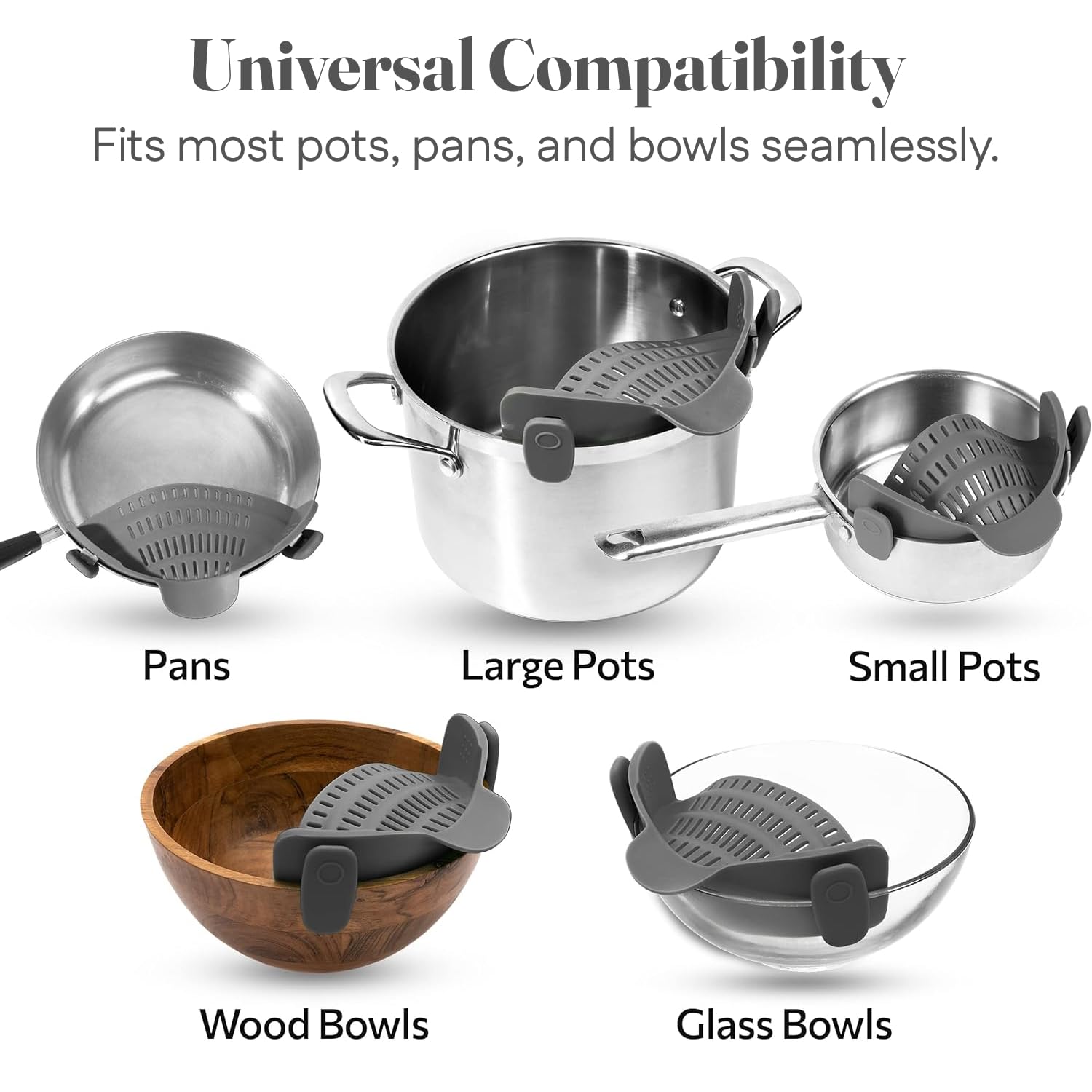 - Compatible with Most Cookware: Specially designed to attach to most pots, pans, and bowls; this clip-on strainer for pots has a universal design that suits any kitchen cooking, big or small