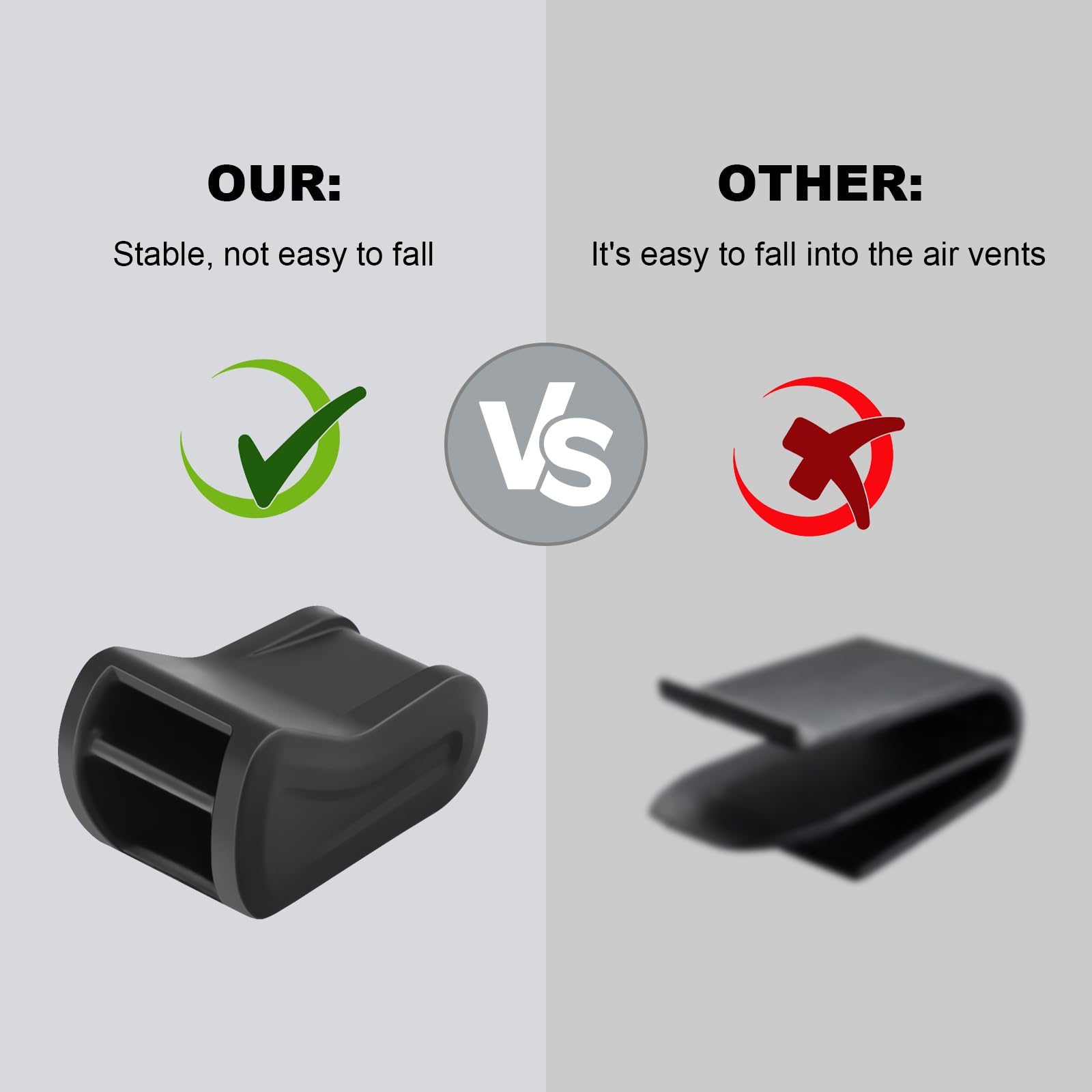 - Humanized Design: The raised baffle at the top effectively prevents it from sliding completely into the car air vent without affecting the air flow. The damping edges on both sides greatly increase the contact area and friction,which helps to securely install it on the car air vent without falling off, and also can move freely over the whole air vent to meet your different needs. The slot on the front end allows you to hold most air fresheners stably with a back clip.