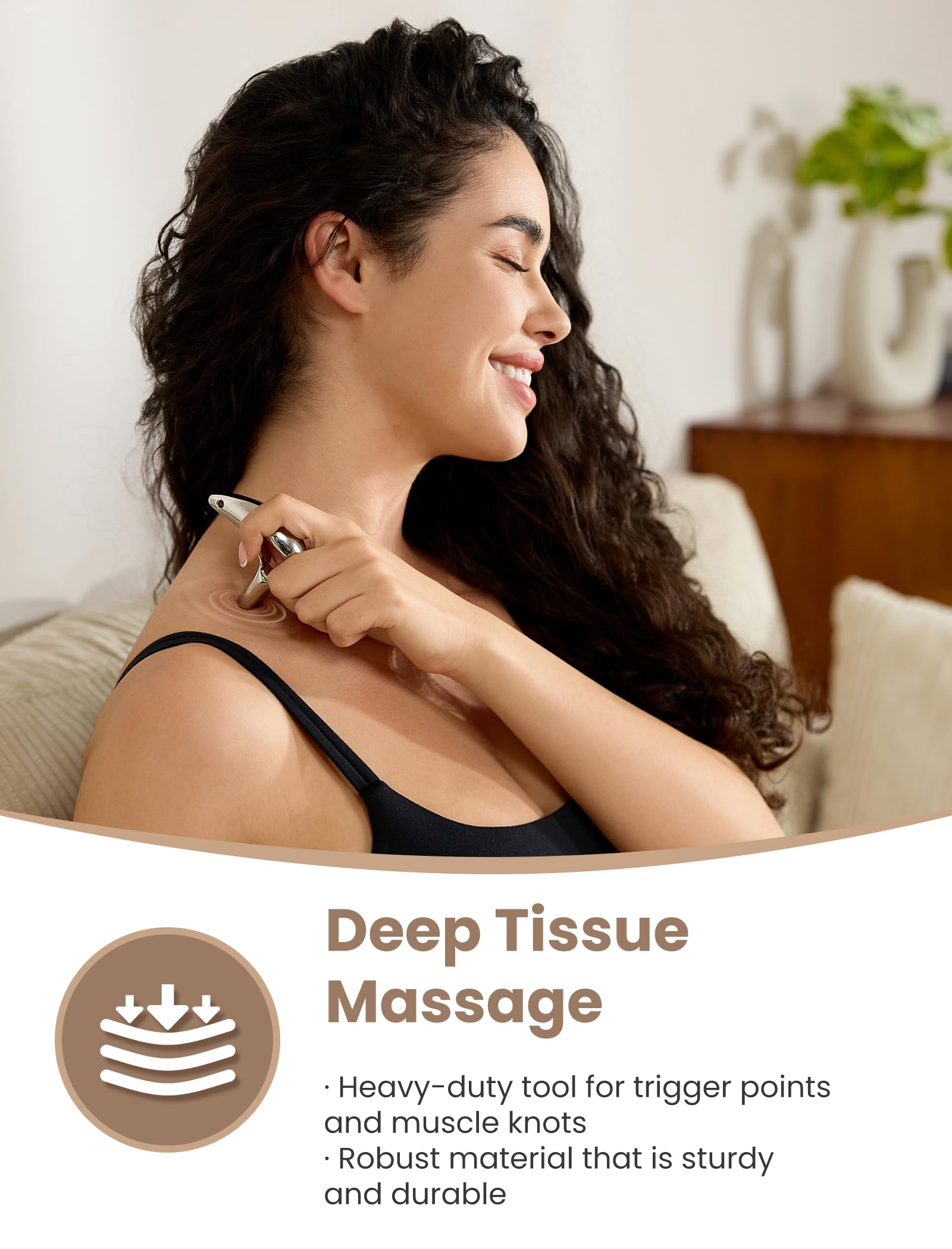 - Versatile Use from Neck to Feet: Featuring a unique wing-shaped design, this massage tool can be used to apply various massage techniques such as Gua Sha, scraping, pressing, and rolling, which proves effective for deep tissue pain relief.