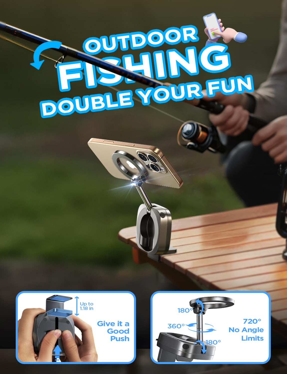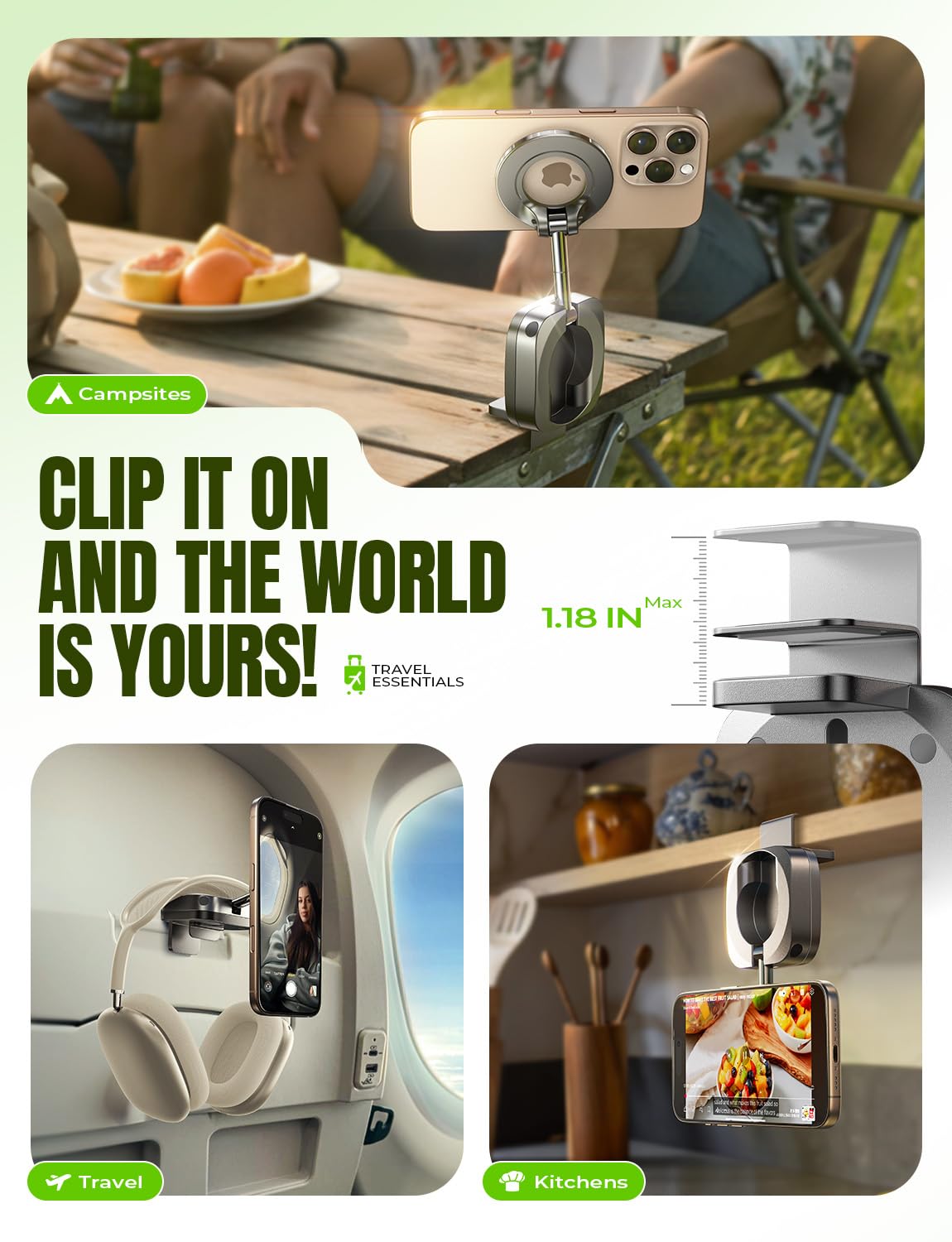 - 2025 Spring Break Essentials:The go-to gift for all travelers – men and women alike – and a New York Times 2025 “Top Tech Gifts” finalist. Lisen phone holder securely onto luggage handles, tray tables, desks, chairs, shelves, beds, books, or power banks, Can double as a compact selfie stick for recording vlog videos – Warm-Weather Must-Have for beach vacations and camping essentials