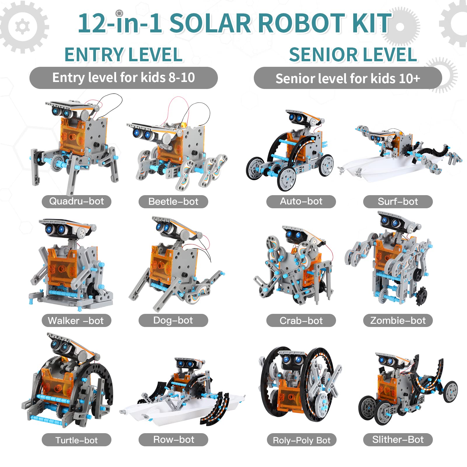 - 12-in-1 Stem Solar Robot Kits -This stem robotics kit for kids can build more than 12 different types of robots by yourself which helps children build a solid foundation in Science, Technology, Engineering and Mathematics at an early age. The parts can be easily disassembled after completion of one robot kit. stem projects for kids ages 8-12 12-14. science kits for kids age 8-12 12-14. toys for ages 8-13.