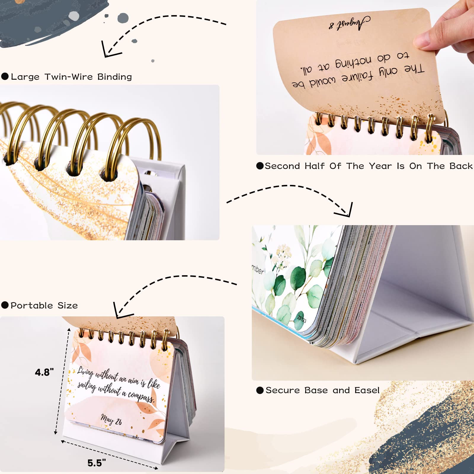 - MOTIVATIONAL CALENDAR - This inspirational daily flip calendar covers 365 days of pages, providing you with inspirational quotes/affirmation/reflection. These quotes can bring you surprises and brighten your life. Morever, calendar of standing size is 4.8''x5.5'', which can put in bag, home, school, or other places.