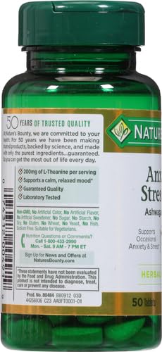 - FROM THE TRUSTED WELLNESS EXPERTS: Nature’s Bounty Anxiety & Stress Relief tablets are a product of nearly 50 years of dedication to quality; consistency; and scientific research to make vitamins and nutritional supplements of unrivaled excellence