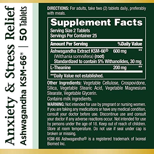 - SUPPORT FROM ASHWAGANDHA: Nature’s Bounty Stress Relief tablets contain 600 mg Ashwagandha KSM-66 per serving; Ashwagandha KSM-66 is a clinically studied herbal extract that supports a healthy response to occasional stress (1)
