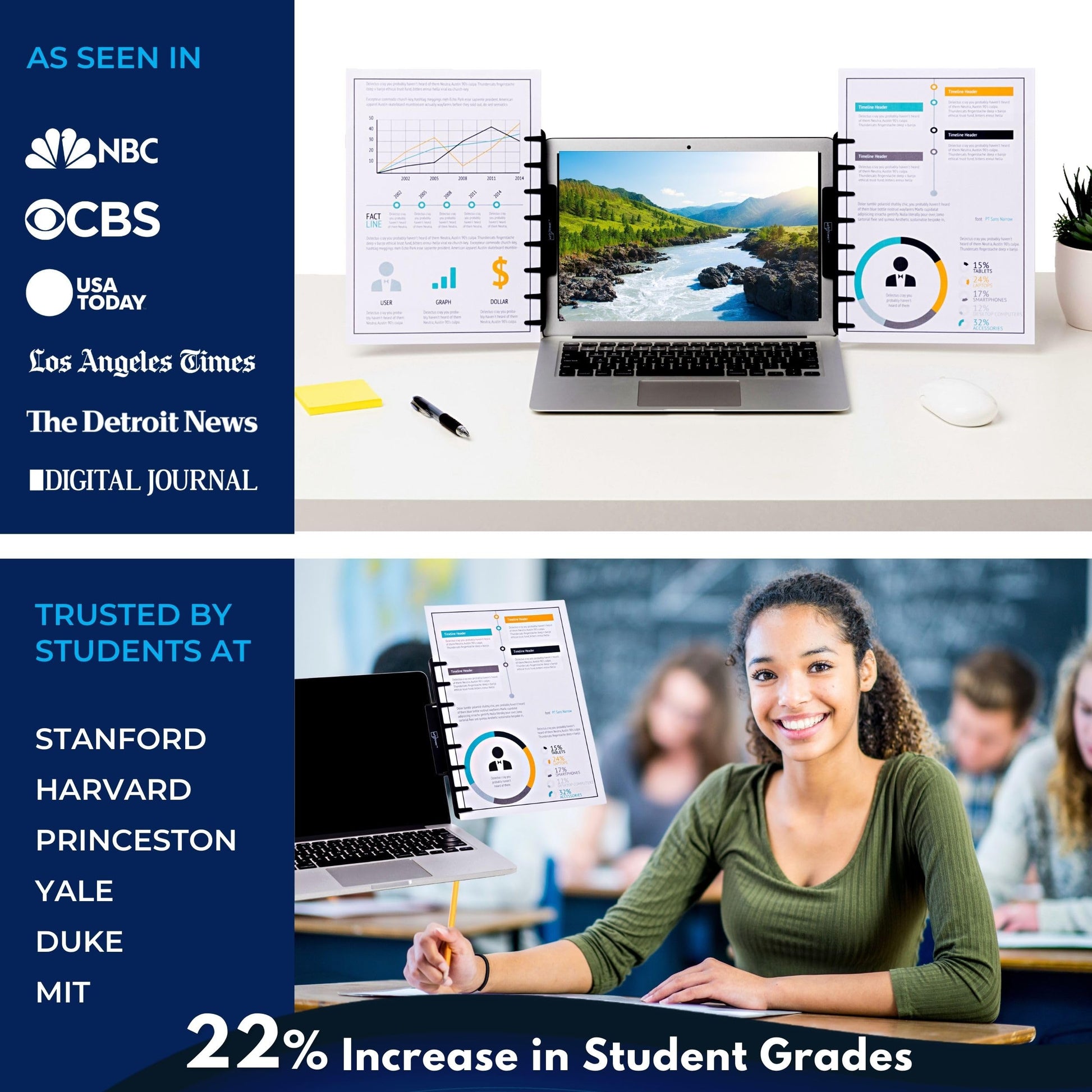 - PORTABLE, COMPACT & LIGHTWEIGHT - Revolutionary Clip-On, Clip-Off design fits neatly in laptop bags & work bags. The clipboard stand is perfect for home, office, college & school use. Mounting adapter included for thicker monitors