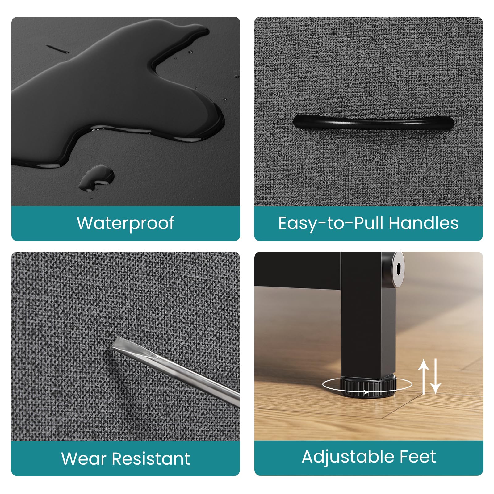 - 【Quality Construction】MDF boards with steel frames, cross support bars and a drawer support shelf are combined to make this drawer sturdy under full load(66lbs). With 4 adjustable feet, there is no need to worry about stability while it's adaptable to different spaces. Anti-tipping accessories are also equipped to prevent accidents.