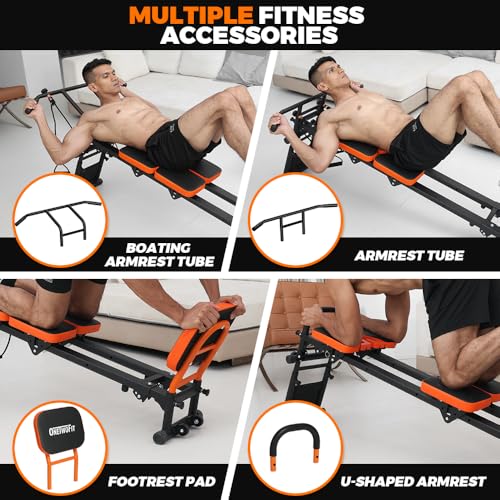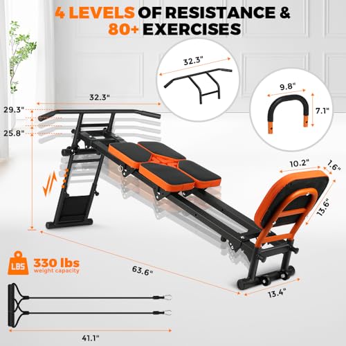 - Include 5 Home Gym System Accessories - Includes a Pull-Up Bar, Boating Armrest Bar, U-shaped Armrest, Footrest Pad, and 2 Resistance Bands. These accessories target various muscle groups, enabling you to customize your workout routine. Enjoy the benefits of pull-ups, rowing exercises, and resistance band workouts—all in one session.
