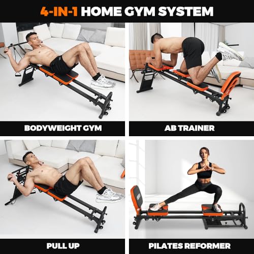 - 4-In-1 Total Workout Machine - ONETWOFIT versatile fitness equipment combines an Ab machine, Bodyweight Gym, Pilates Training , and Pull-Up Bar into one device. Our all-in-one gym machine allows for core & abdominal strengthening, resistance training, stretching, upper body exercises and full body workout, providing a dynamic workout experience.