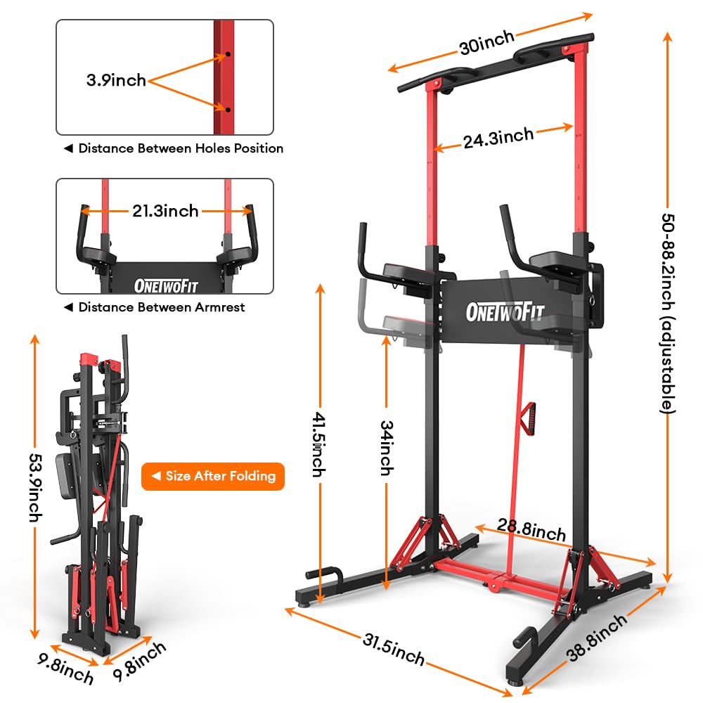 ONETWOFIT Power Tower Pull Up Bar Station, Multi-Function Adjustable Height Foldable Dip Station for Home Gym Workout, Heavy Duty Strength Training Fitness Equipment, Pull Up Stand 400LBS