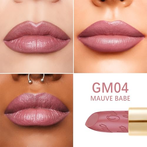 Oulac Matte Mauve Pink Lipstick with Glow Metallic Finish - Vegan Lipstick for Women, Creamy Texture, Hydrating Clean Beauty Formula, High-End Magnetic Hook Design, GM04 Mauve Babe