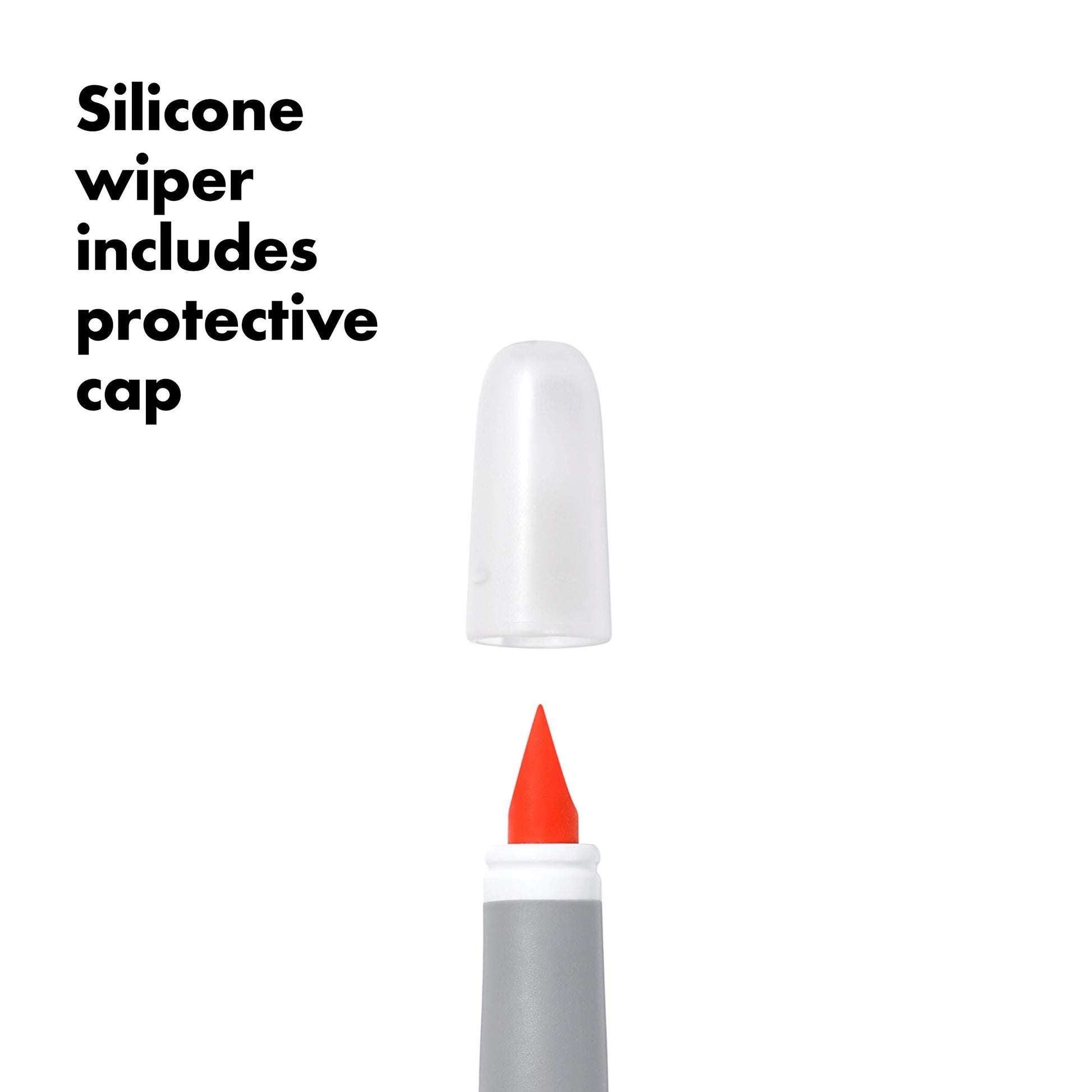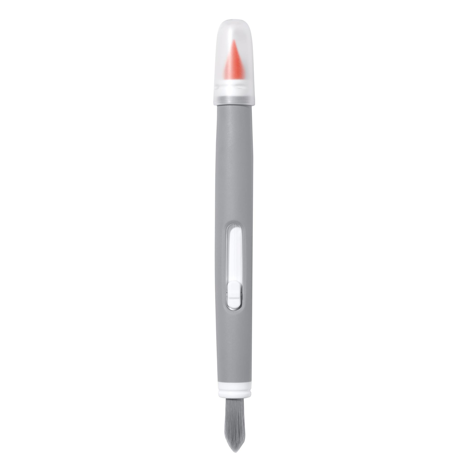 Details: Keep expensive equipment dust-free with the OXO good grips electronics cleaning brush. A slim silicone wiper cleans dust from small, hard-to-reach places, including between keyboard keys and around the edges of screens. The soft bristles are gentle enough to clean camera lenses and more. This tool comes with a cap to protect the silicone wiper, and the bristles retract into the device. Keep an electronics cleaning brush in your desk drawer, car console or laptop bag.