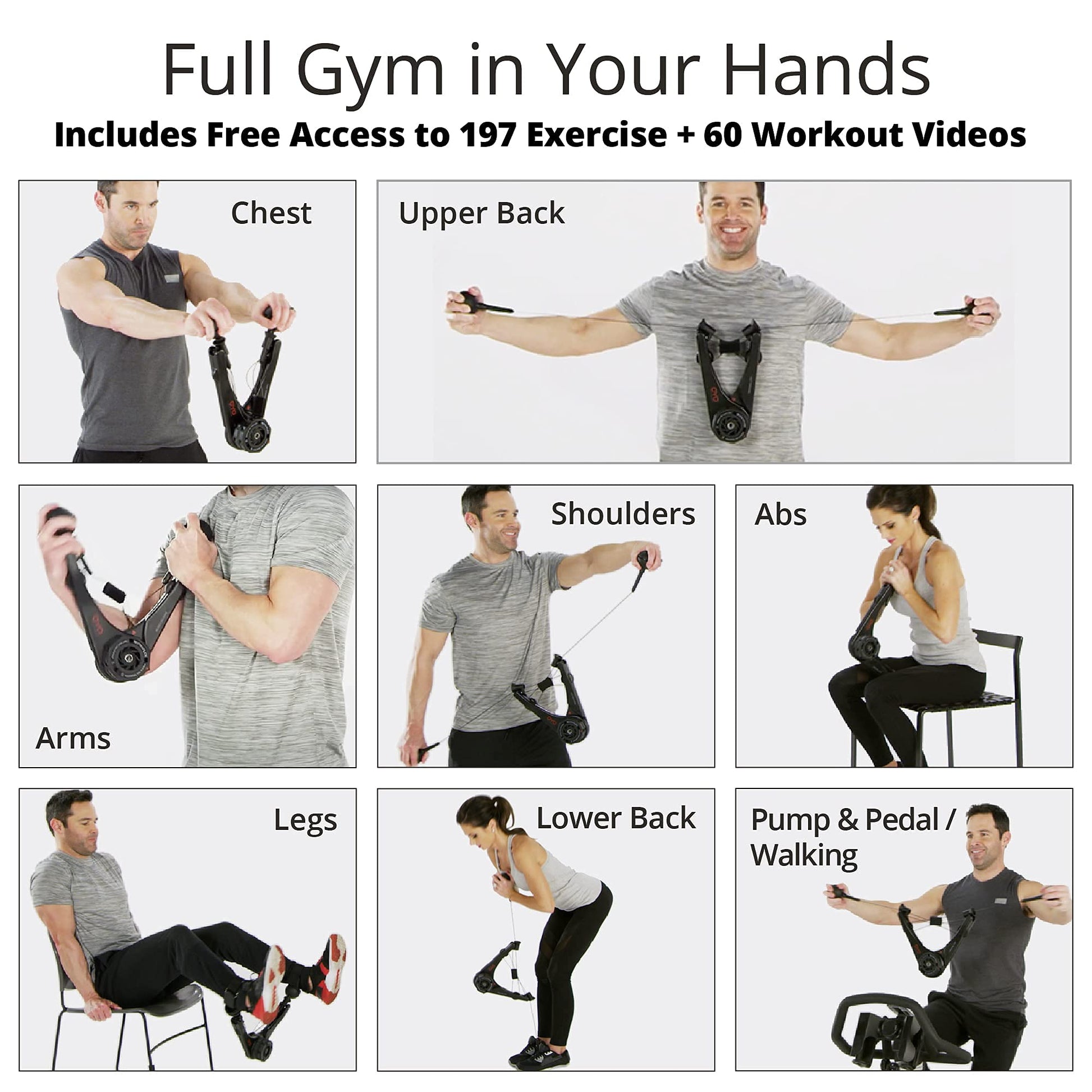 - TRANSFORM YOUR BODY – Full Gym in Your Hands, with up to 25 lbs. of Resistance in each hand, yet only weighs 2lbs and folds up to go anywhere. Targets Chest, Back, Arms, Core, Abs and Legs. Ideal for beginner to intermediate strength training and cardio, and those needing to work around injuries or rehab joints and muscles. Get fit anywhere – Home, Office and Travel.