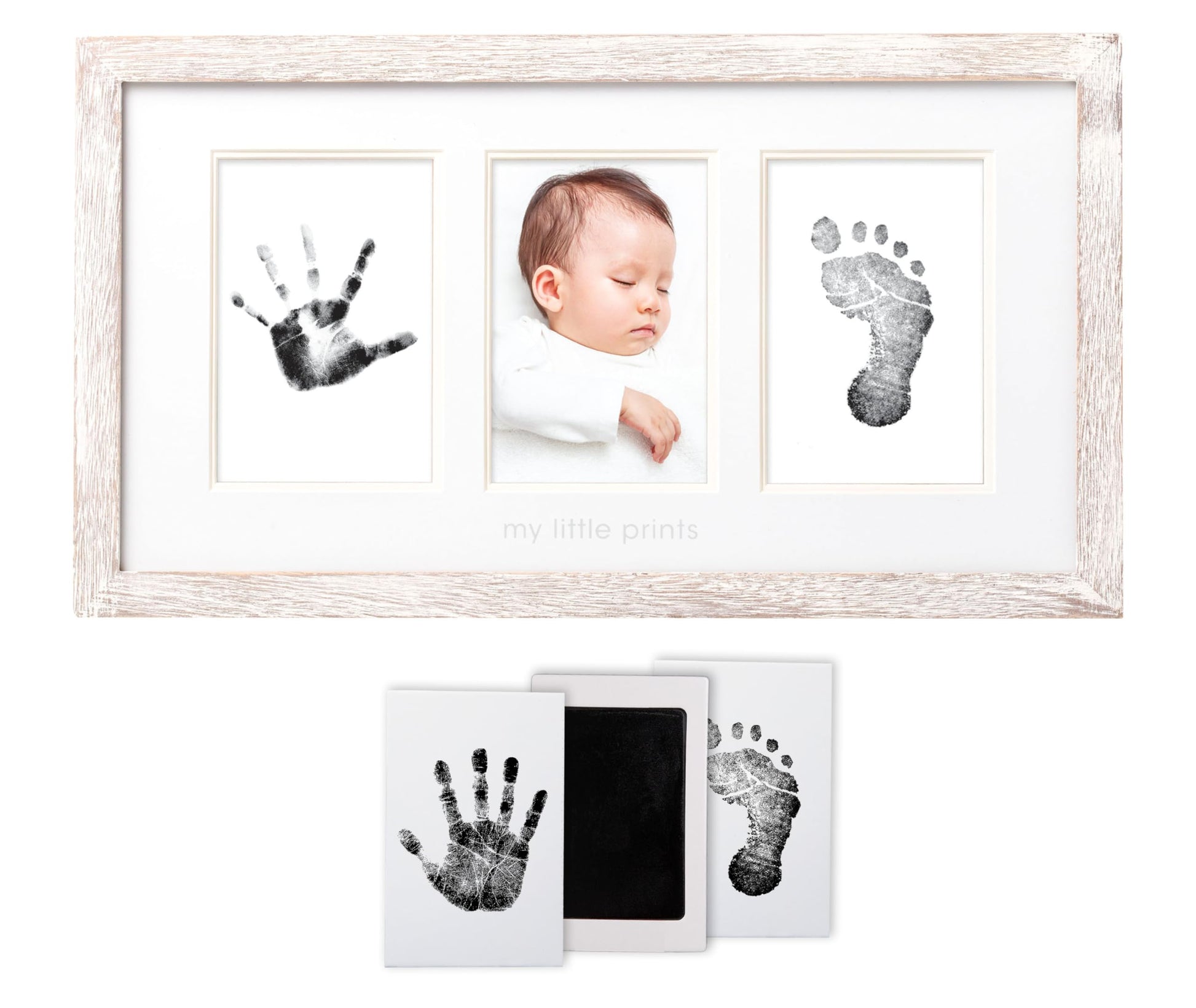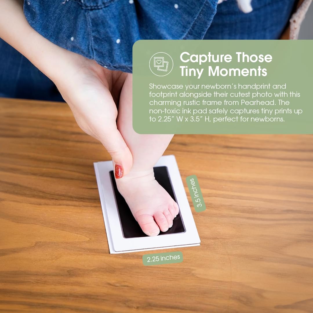 Pearhead My Little Prints Newborn Handprint & Footprint Frame Kit - No Mess Clean Touch Ink Pad, Gender-Neutral Keepsake, Ideal Shower Gift, Nursery Decor, Distressed Wood