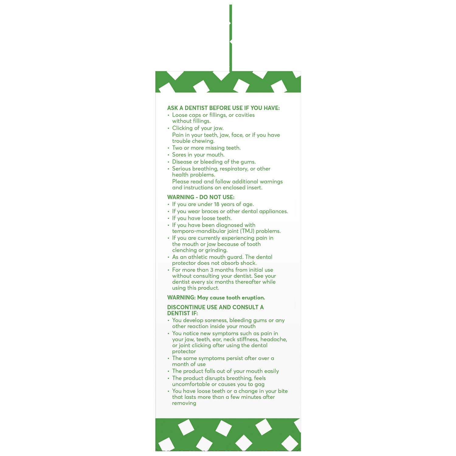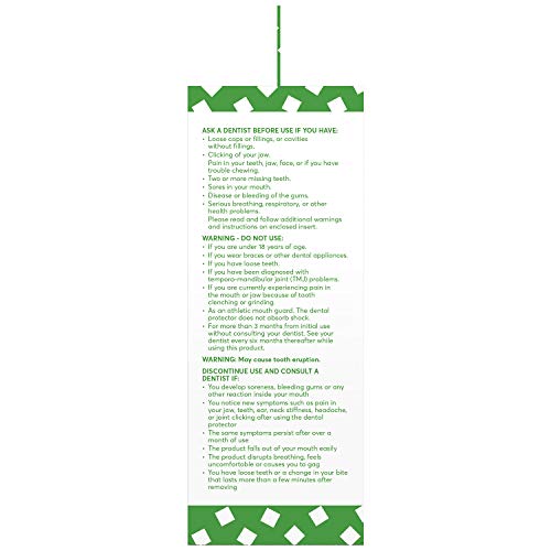 Details: Protect your teeth and get a more restful sleep with Plackers Grind No More Dental Night Protectors. Tired of teeth grinding through the night? Turn to Plackers Grind No More dental night guard. Our disposable and ready-to-use night guard can be used for bruxism, more commonly known as teeth grinding or clenching. The streamlined design is one-size-fits-all and can be worn on the upper or lower teeth, whichever is more comfortable: no boiling, cutting, or molding required. Our instant fit guards can be used for up to 3 nights and are easily disposable, eliminating the stress and providing optimal protection for both "clenchers" and "grinders" alike. With patented bite plate alignment grooves, absorbing bite plates, and stabilizing bite plate lips; The Plackers Grind No More dental night guard works throughout the night to deliver protection, comfort, and peace of mind. Since pioneering the first dental flosser, patented over 40 years ago, Plackers has helped brighten the smiles of millions: We know your smile is important to you, so let us help you keep it clean and healthy!
