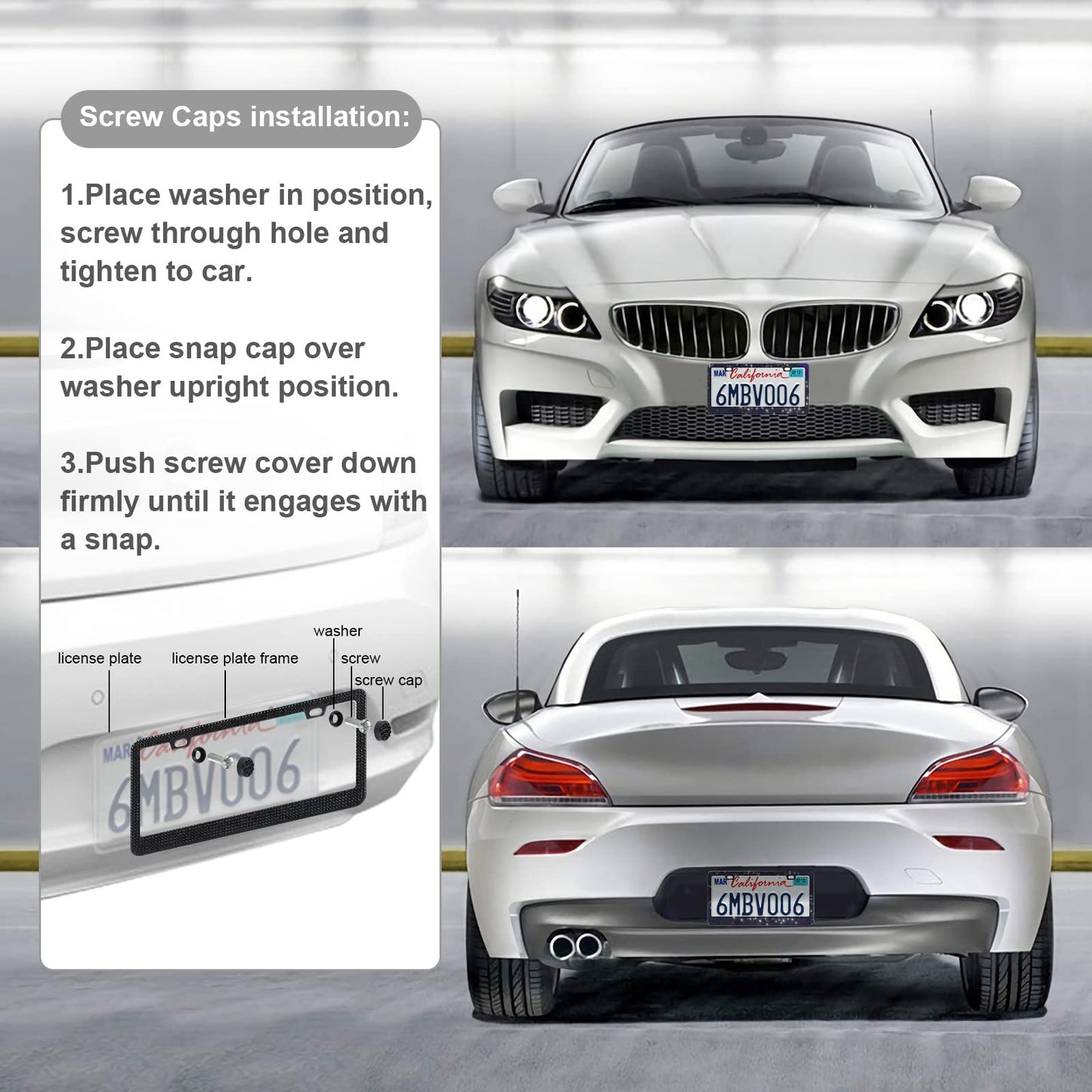 - EASY TO INSTALL: QUANQIUFEI cute car accessories for women comes with perfect fittings, super easy to install without any special tools. Simply cover the frame over the license plate and secure it to your vehicle with the included anti-theft screws. Not only do these screws protect your license plate from theft, but they also securely hold the plate in place.