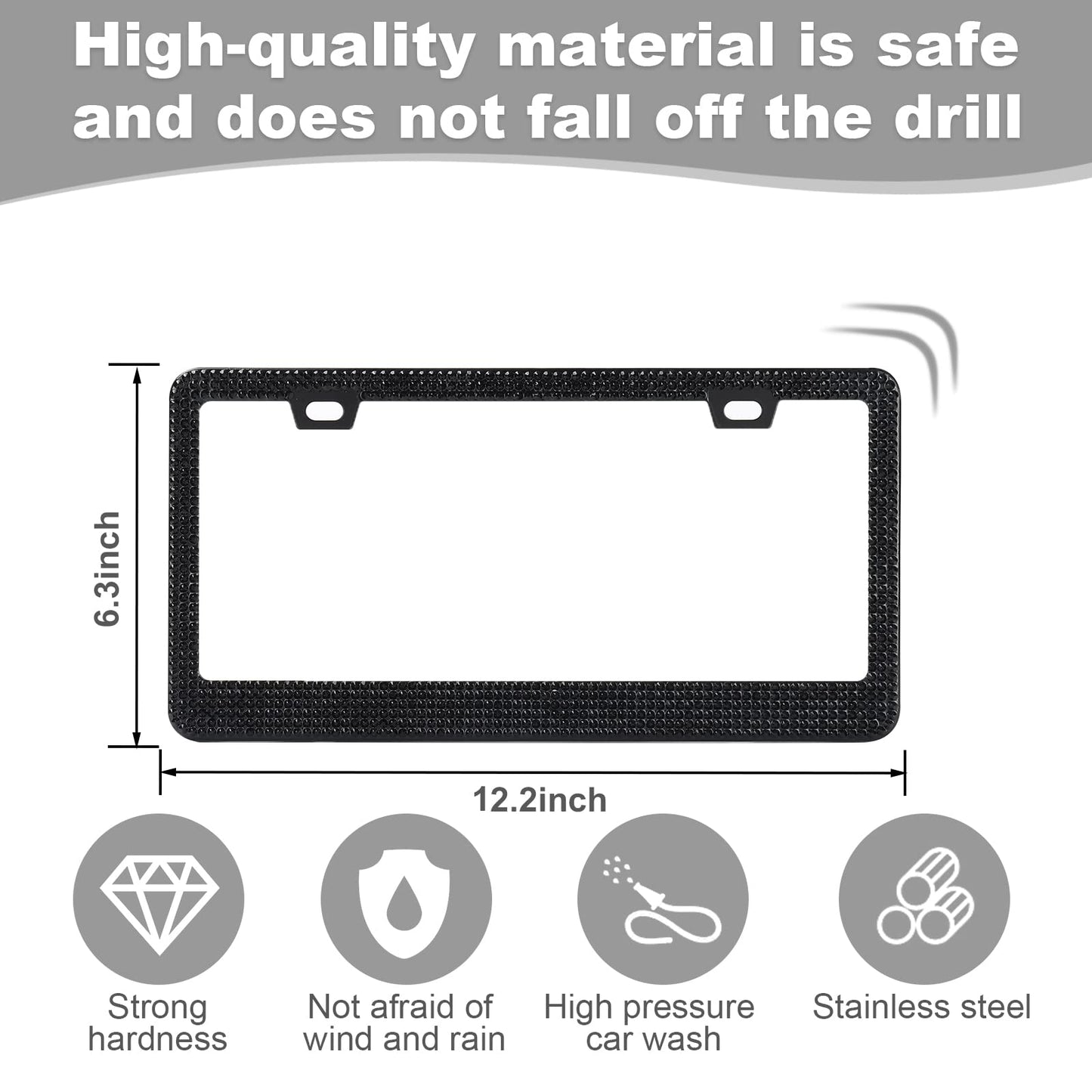 - PREMIUM QUALITY: QUANQIUFEI stainless steel material, polygon-cut crystal rhinestones, wear-resistant, waterproof, not afraid of high temperature, easy to deal with all kinds of bad weather, making it not easy to fall off after long-term use. Besides, the carefully polished license plate frame will not scratch your car and your hands.